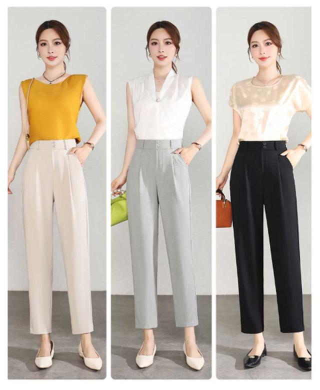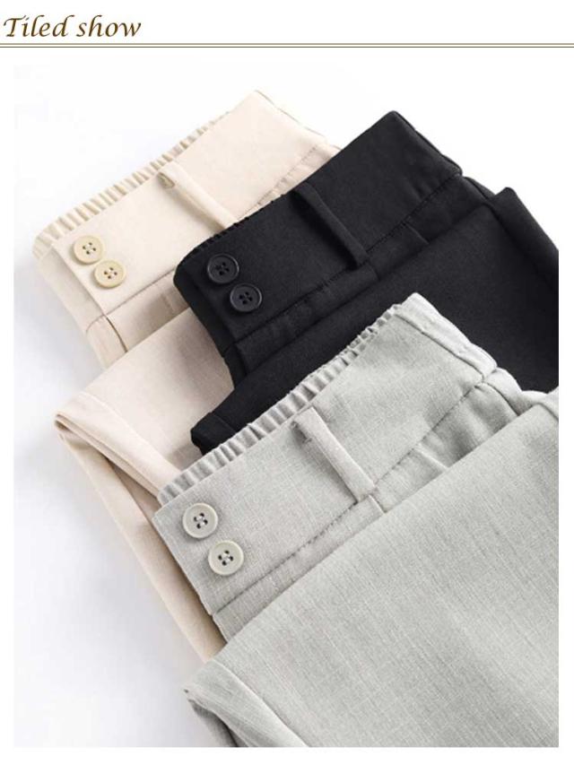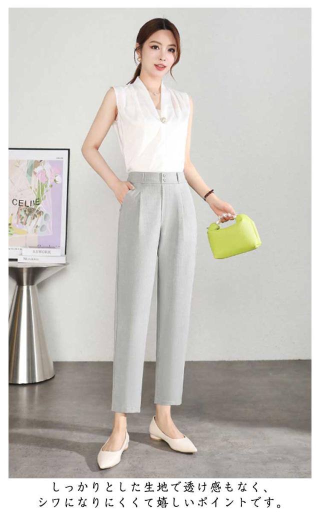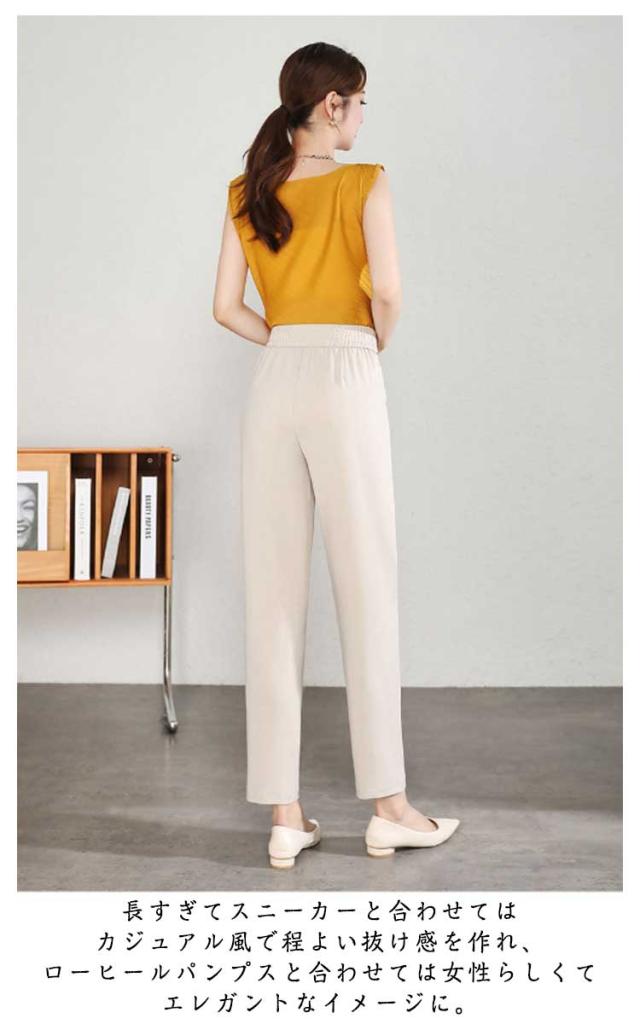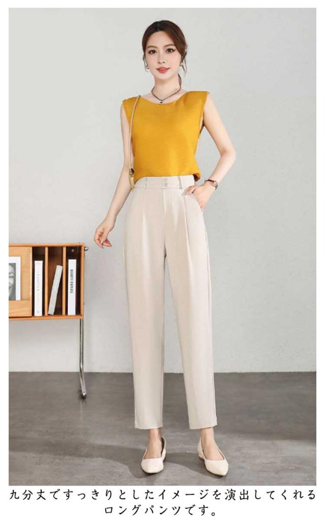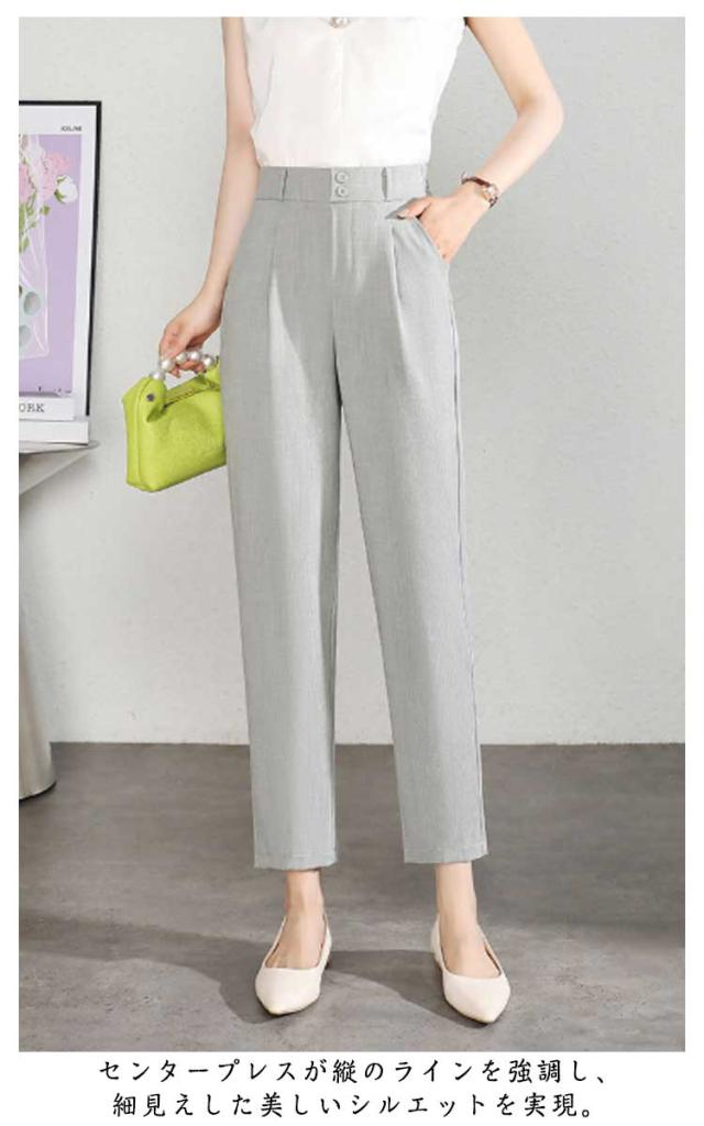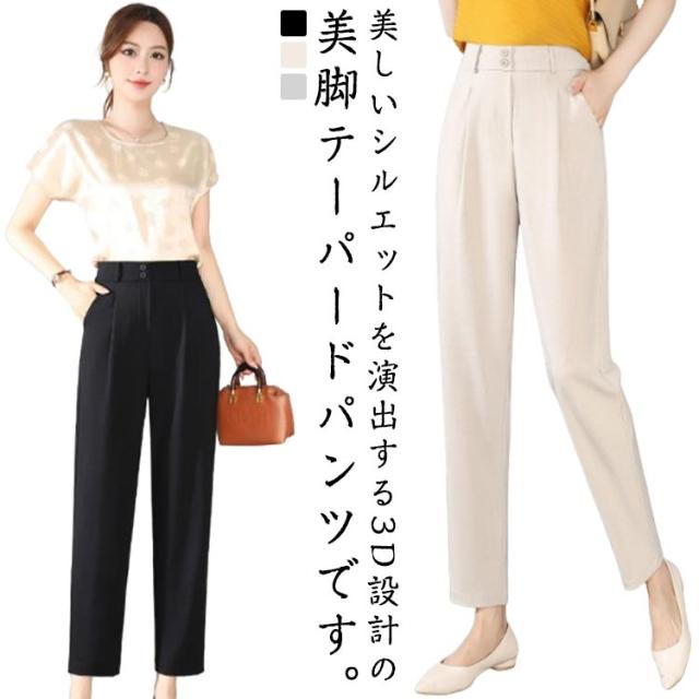 テーパードパンツ クロップドパンツ レディース 夏 ボトムス パンツ ストレート タック入り 九分丈 薄手 涼しい シンプル カジュアル ハイウエスト 着?せ 美脚 高見え 通気 接触冷感 通勤 仕事 ォーマル 送料無料