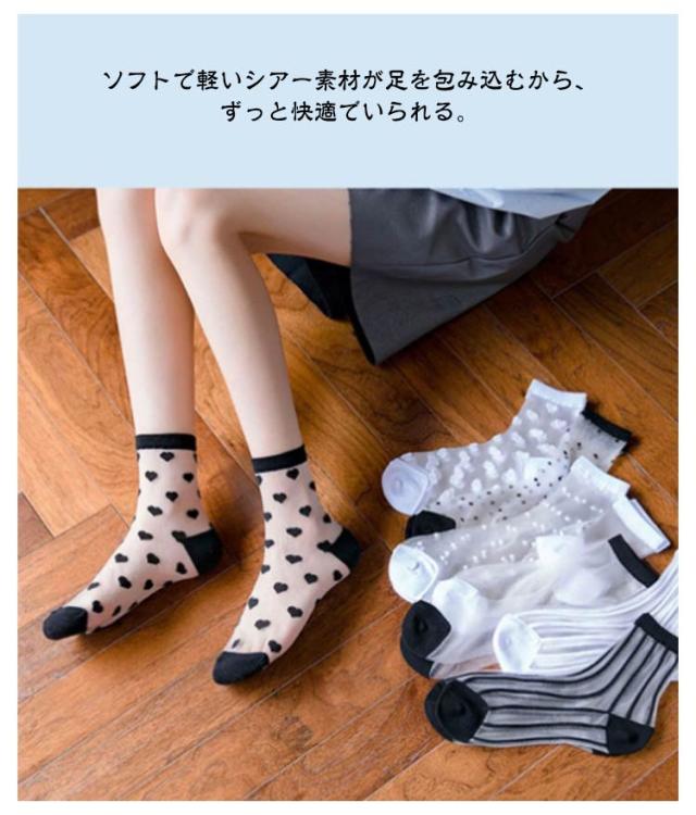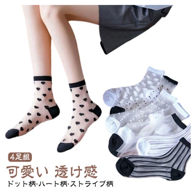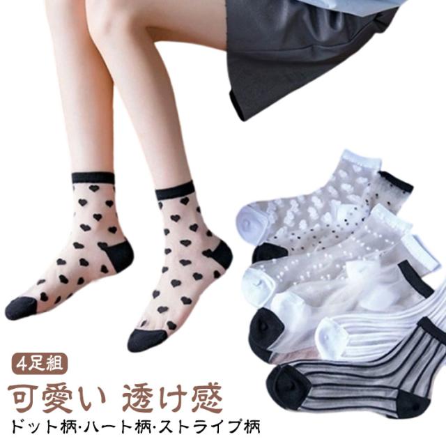 4足組 シースルーソックス ドット柄 ハート柄 可愛い レディース 女の子 靴下 ソックス 春 夏 秋 シアー シースルー ショートソックス ロークルー 透け感 レース 涼しい 蒸れない ガーリー カジュアル おしゃれ 抗菌 防臭 パンプス サンダル ソックス 夏用 黒 【送無】