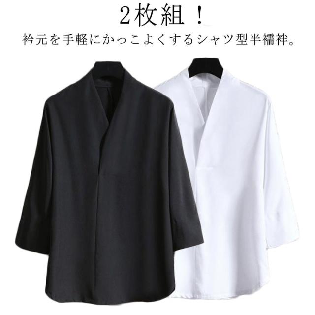 半襦袢 メンズ 男性 シャツ 黒 白 Vネック 半襦袢 洗える 半袖 五分袖 襦袢 2枚組 和装 肌着 着物 下着 作務衣 浴衣 インナー 襟付き Tシャツ 夏用 冬用 肌襦袢 合衿 衿付き 和装下着 紳士 長襦袢 代替品 作務衣 甚平 着物の肌着用