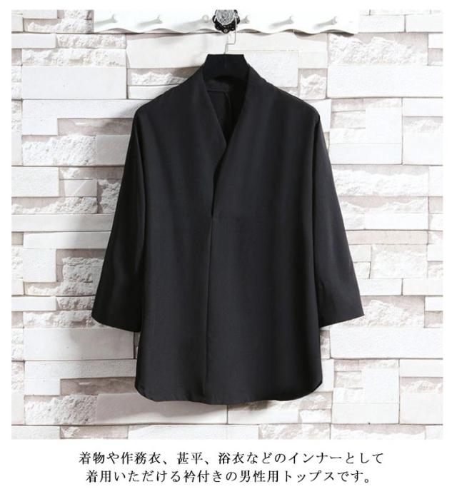 | 2枚組!衿元を手軽にかっこよくするシャツ型半襦袢。 直接肌の上に着るだけなので、紐類がいらず、 着付けがとっても楽なのに、半衿が付いているのでまるで襦袢を着ているかのように見えます。 着物や作務衣、甚平、浴衣などのインナーとして着用いただける衿付きの男性用トップスです。 シャツ単体としてもお使いいただけるおしゃれな1枚です。 | |