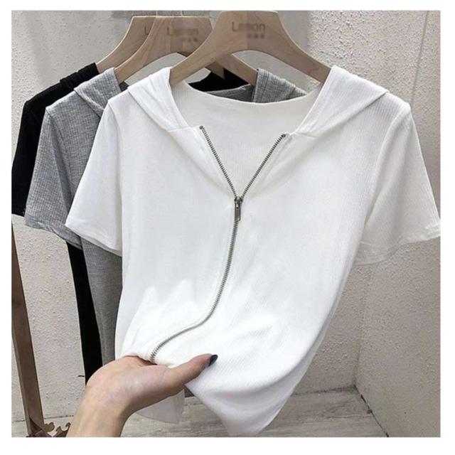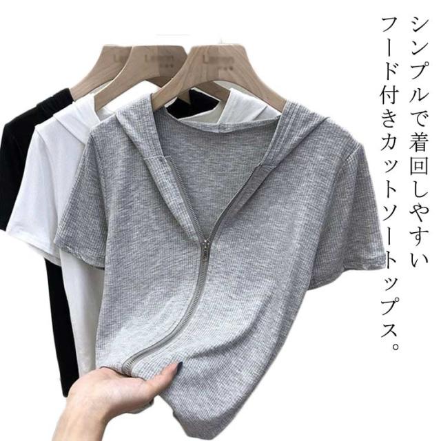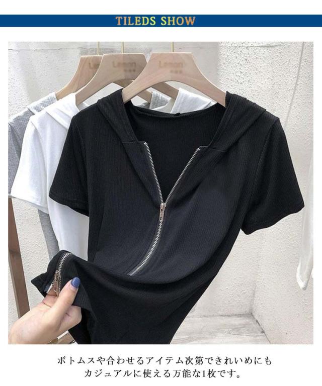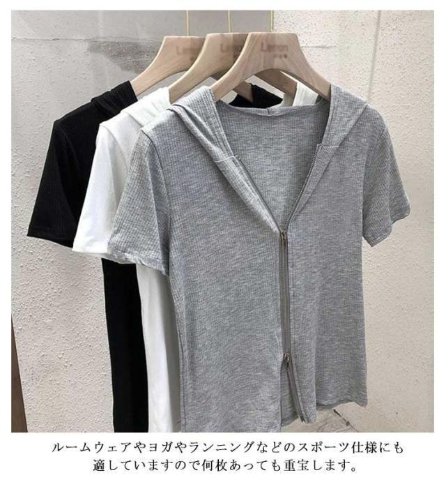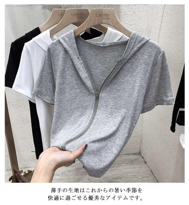 ジップアップ パーカー 半袖 レディース tシャツ ジップパーカー 高校生 女の子 小学生 薄手 おしゃれ 半袖tシャツ フード付きtシャツ 半袖カットソー ショート丈 羽織り レイヤード 女性用 涼しい サマーパーカー 夏パーカー カジュアル 無地 シンプル 春夏