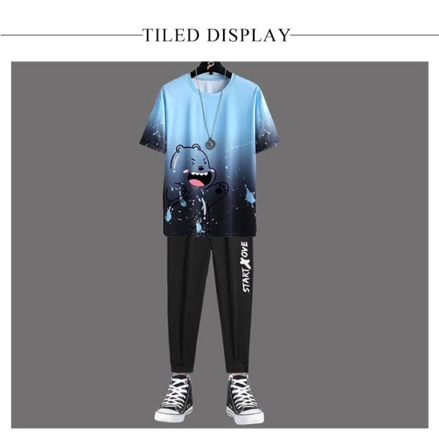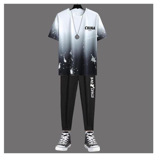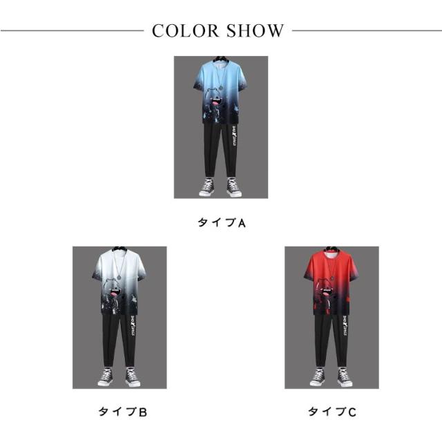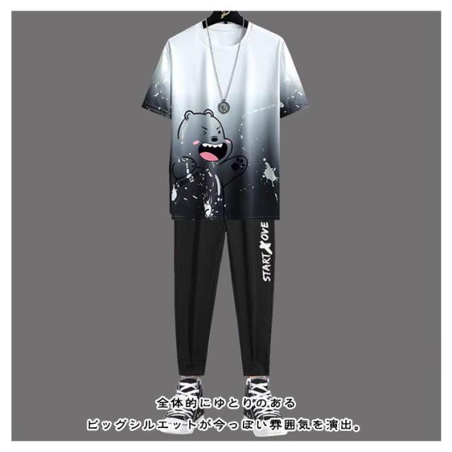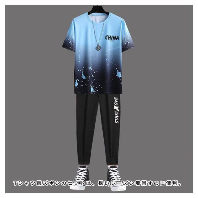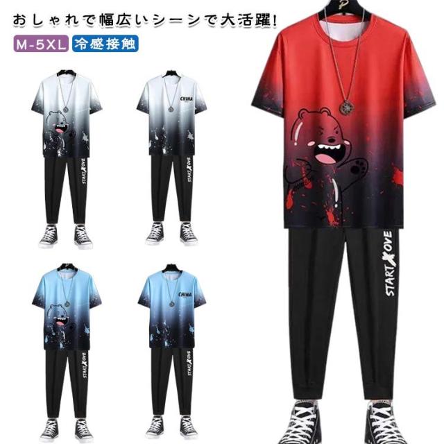 セットアップ メンズ 光沢感 ジャージ セットアップ ワイドパンツ 上下セット サマーセット 冷感接触 ロングパンツ 速乾 薄手 ルームウェア 大きいサイズ 涼しい 夏服 半袖 部屋着 夏 春夏 ビッグシルエット カジュアル 韓国 M L XL 2XL 3XL 4XL 5XL