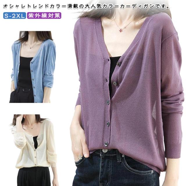 カーディガン 送料無料 UV 長袖 通勤 春 オフィス 薄手 紫外線対策 ニットカーディガン 黒 白 サマーカーディガン サマー 春夏 きれいめ トップス Vネック ショート丈 通勤 UVケア 軽い 秋 キレイめ 薄手 冷房対策 通勤 S M L XL