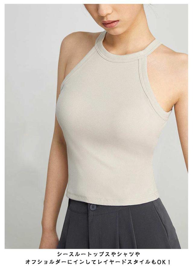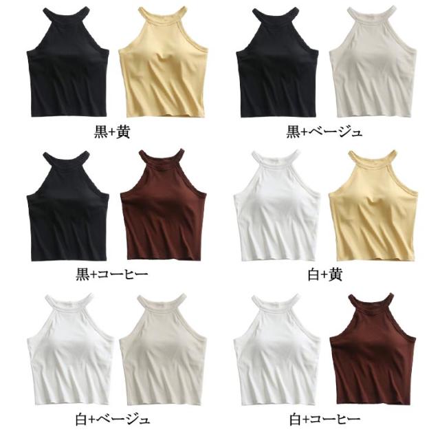 カップ付き タンクトップ レディース トップス 2枚組 ブラカップ ホルターネック ブラトップ キャミソール カジュアル リブ生地 インナー 無地 レイヤード 重ね着 お洒落 スポーツ 春夏 ストレッチ性 送料無料