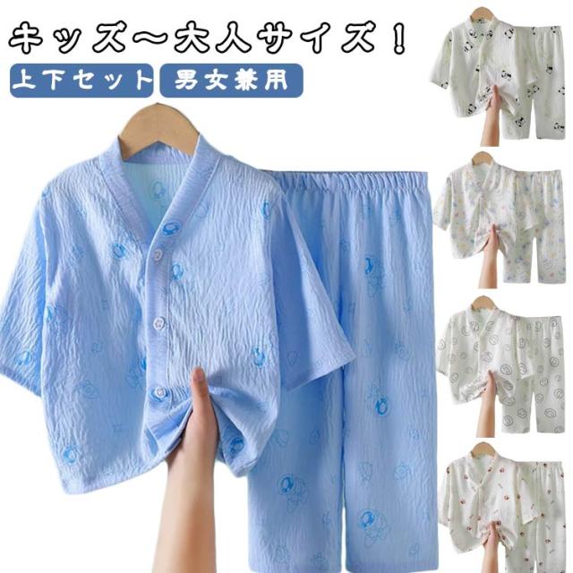 寝巻き リラックス 子供 トップス 女の子 男の子 ロングパンツ パジャマ キッズ メンズ 上下セット 子供服 レデイース 部屋着 ナイトウェア 寝間着 セットアップ 半袖 ルームウェア 男女兼用 春 ルームウェア 薄手 無地 おしゃれ 伸縮性 夏 90 100 110 120 130 140 150 160