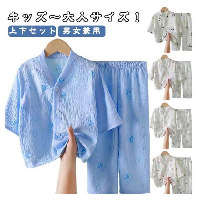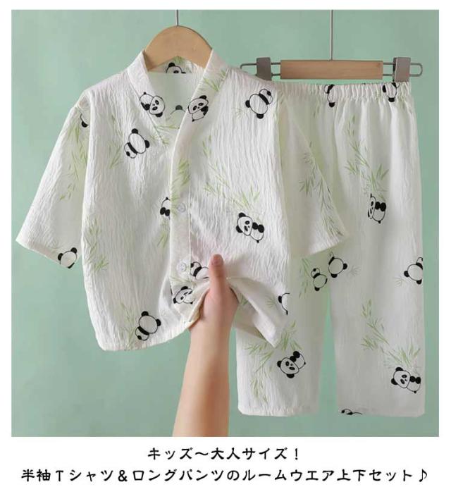 | キッズ〜大人サイズ!半袖tシャツ&ロングパンツのルームウエア上下セット♪ 柔らかくて滑らかな素材を使用し、お子様のお肌に優しい♪ 爽やかな柄使いで軽くて涼しげな夏らしい印象に 普段着からカジュアルまで大活躍する2点セット。 | |