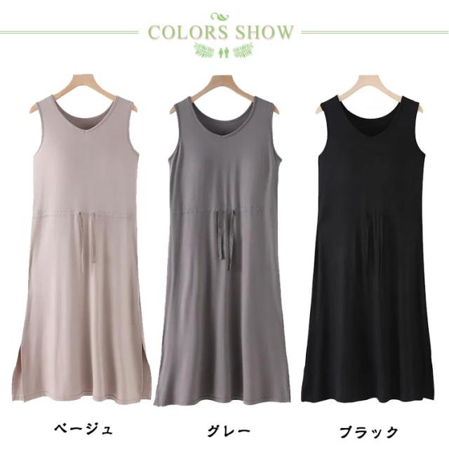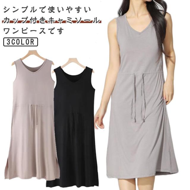 カップ付き ノースリーブ ワンピース ナイトブラカシュクールワンピース 夏用 ルームウェア レディース スリット カップ付き ロングワンピース ナイトブラ一体型 薄手 ゆったり 無地 ワンマイルウェア ナイトウェア 体型カバー ドローストリングウエスト 送料無料