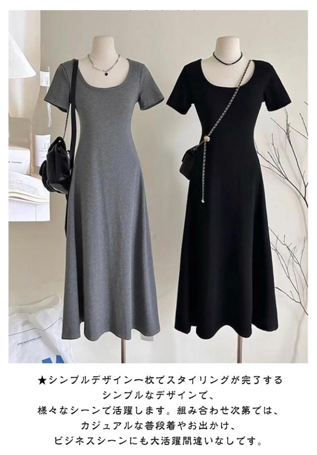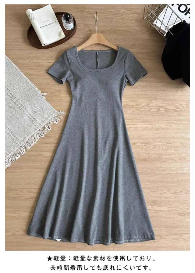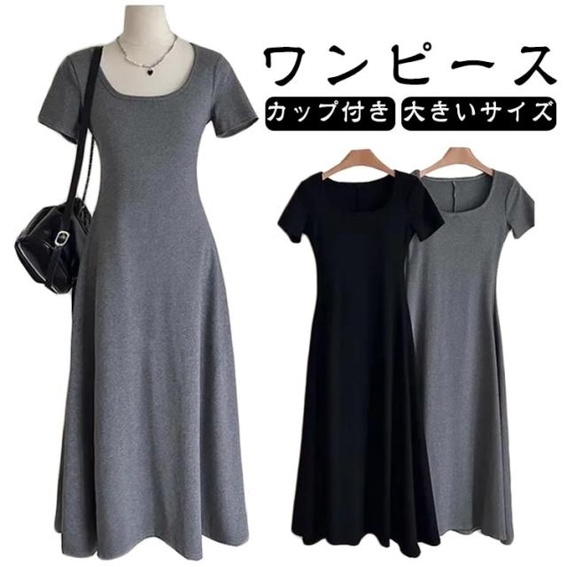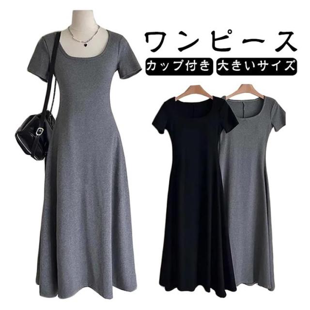 カップ付き 半袖 ワンピース ブラトップ ボートネック ルームウェア 着痩せ ロング丈 Aライン ブラワンピ レディース 育乳 盛れる 締め付けない 大きいサイズ ノンワイヤー 楽 透けない 体型カバー 着心地 春夏 グレー ブラック 送料無料