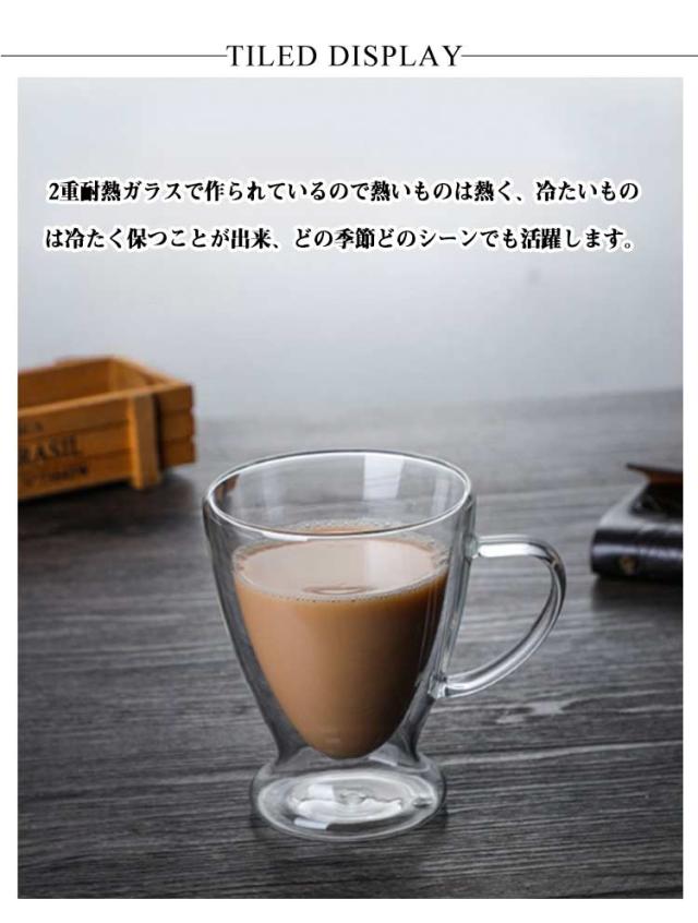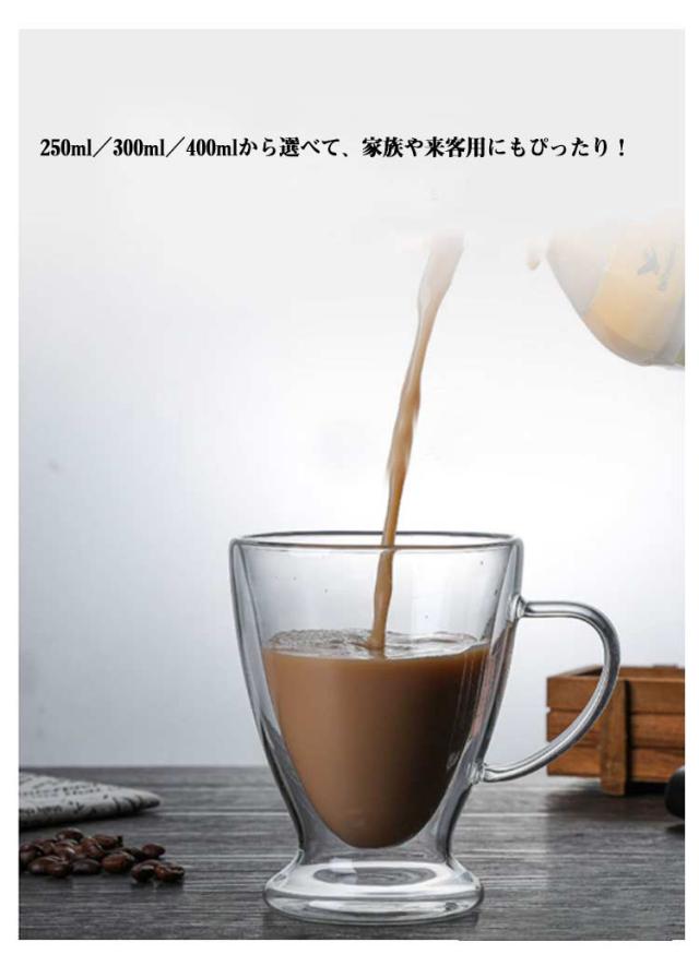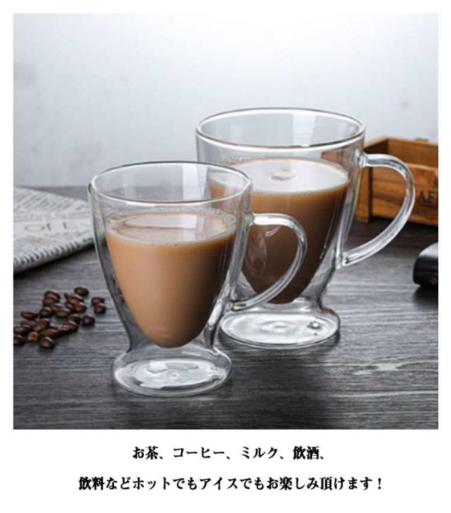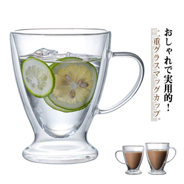 ダブルウォールグラス 2個セット 取っ手付き コップ 耐熱ガラス 二重グラス カップ お洒落 250ml 300ml 400ml 透明 二重構造 北欧風 食器 洗いやすい お茶 コーヒー お酒 キッチン用品 家庭用 送料無料