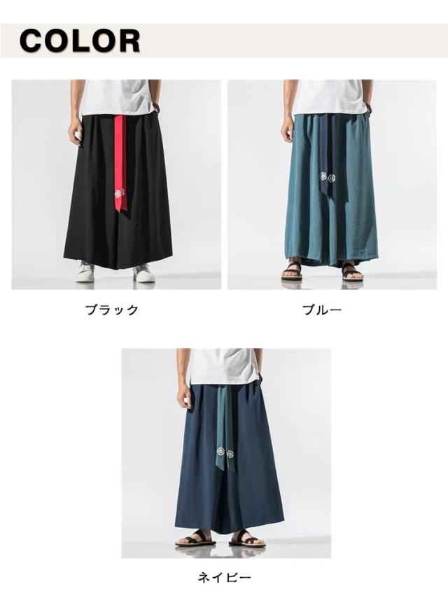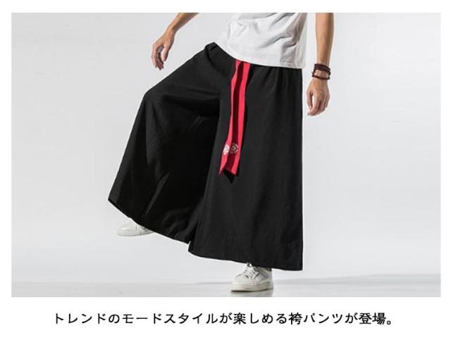 ロングパンツ 和柄 スカンツ 大きいサイズ 刺繍 ゆったり 長ズボン スカーチョ モード ワイドパンツ ワイド ガチョウパンツ ロング カジュアルパンツ 麻 リラックス タイパンツ 秋 ロングパンツ ストリート ドレープスカート ダンス 春 夏 袴パンツ
