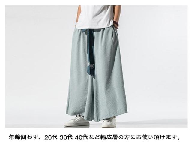 | トレンドのモードスタイルが楽しめる袴パンツが登場。 ゆるめに穿きこなせるゆったりとしたビッグシルエットと絶妙な丈感で、旬のコーデを実現してくれます。 袴としてもオススメ!ボリュームでカジュアル×ルーズな着こなしからシャツスタイルで上品なきれいめモードスタイルにも使える個性派パンツです。 ウエスト部分は、紐付きのデザインなのでリラックス感も満載です! 両側にポケット付き、スマホや小物入りことができて、実用性とデザイン性を共に兼ね備える。 年齢問わず、20代 30代 40代など幅広層の方にお使い頂けます。 | |