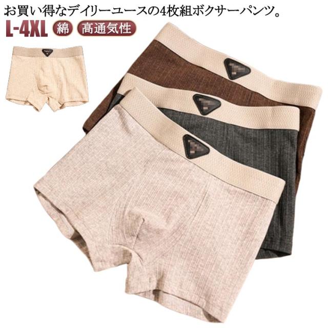 | お買い得なデイリーユースの4枚組ボクサーパンツ。 ゆったりシルエットで柔らかな綿ニットの着心地。 スタンダードで飽きのこないシンプルなデザイン。 厳選された綿を使用し、ナチュラルでソフトな着心地にこだわりました。 | |