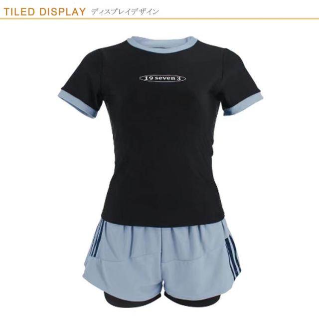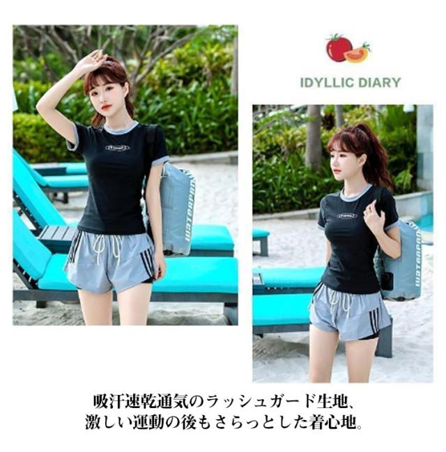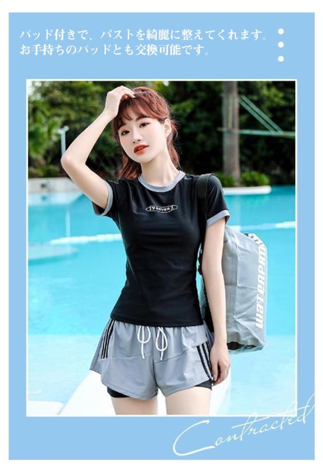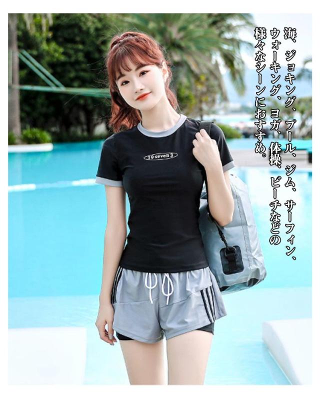 UVカット セパレート水着 高校生 上下セット 水着 ショートパンツ セパレート 半袖 フィットネス水着 スクール水着 ママ水着 中学生 女子 レディース 大学生 水陸両用 シンプル 体型カバー ストレッチ 伸縮 パッド付き