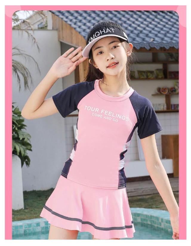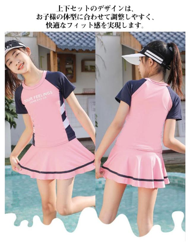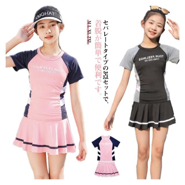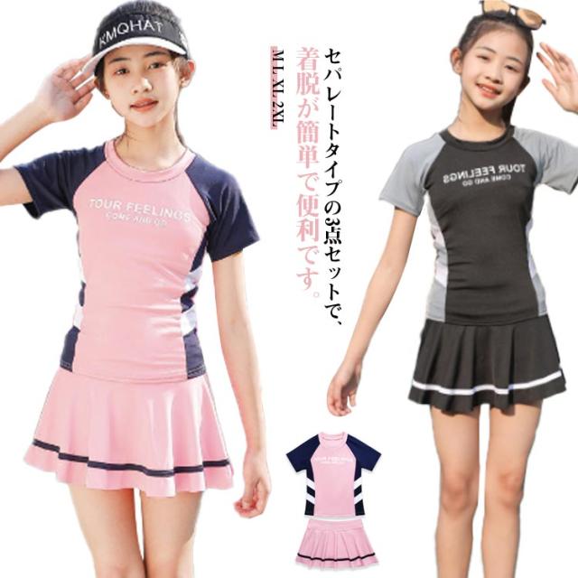 女の子 タンキニ セパレート水着 半袖 子供 水着 水着 小学生 キッズ スカート水着 女児 水泳着 中学生 ジュニア スイムウェア 子供用 速乾素材 紫外線対策 UVカット 夏休み 海 ビーチ 温泉 旅行 プール