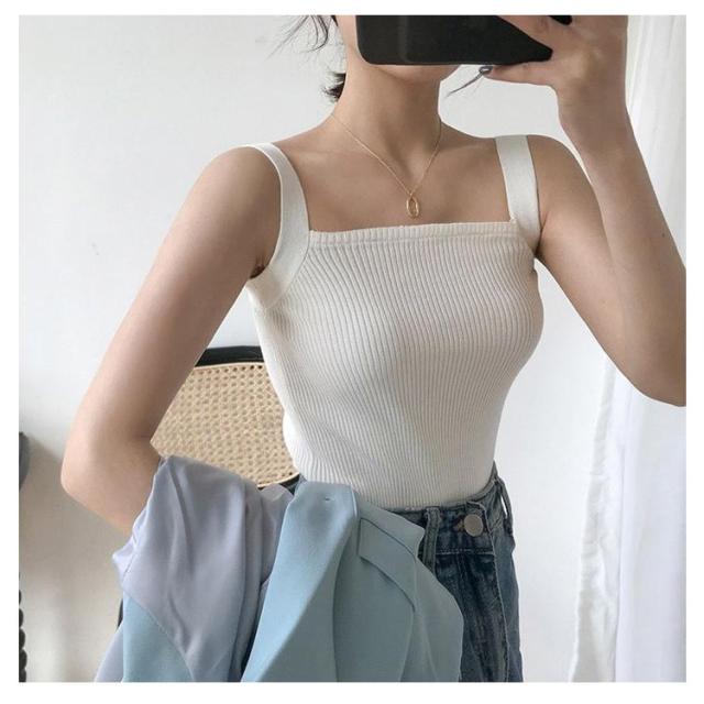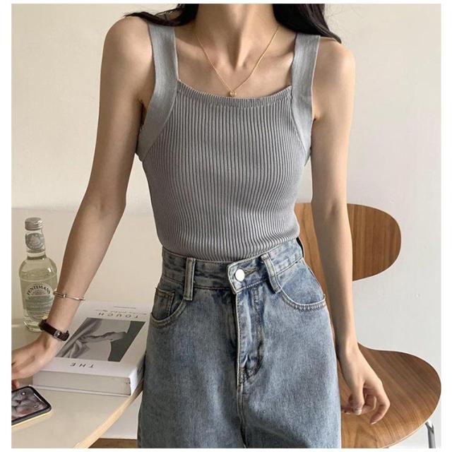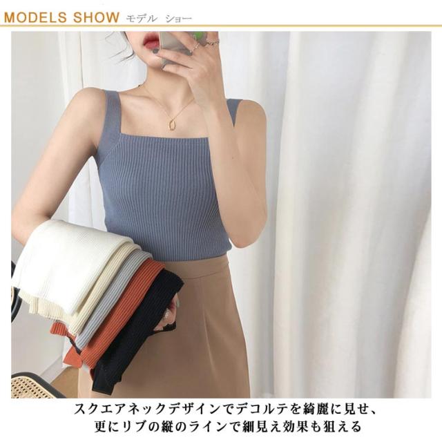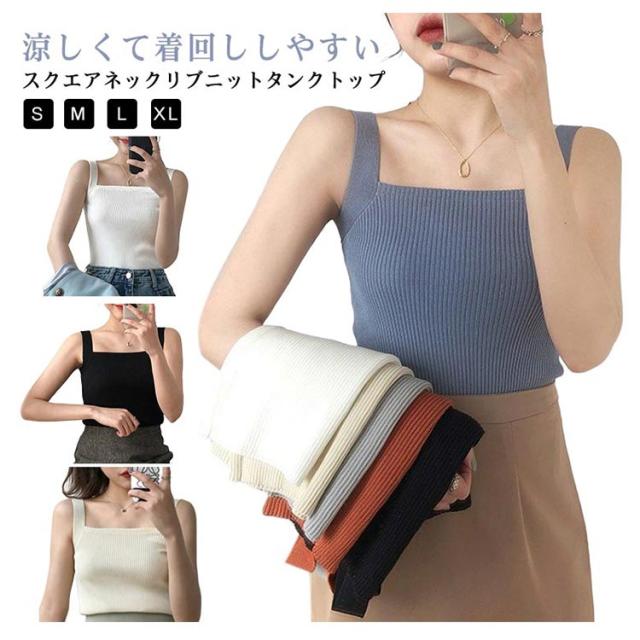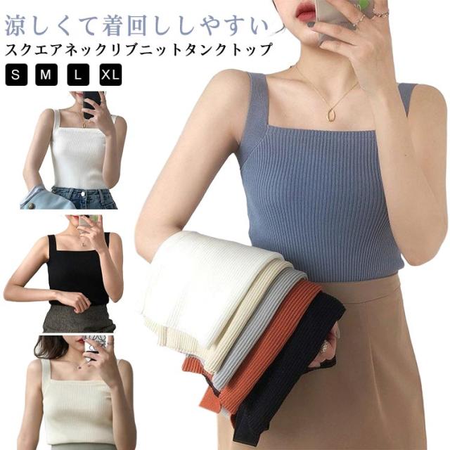 タンクトップ レディース リブニット リブニット ノースリーブ リブニット キャミソール トップス ショート丈 スクエアネック 無地 カットソー ニットトップス サマーニット ストレッチストレッチ 涼感 透け防止