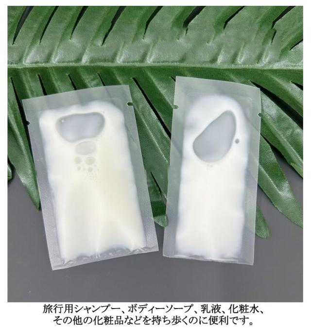| 300枚セット!1ml 2ml 5ml 10mlの4サイズ展開 旅行やキャンプ、バーベキューの携帯用として使いやすいのパウチ。 1ml 2ml 5ml 10mlの4サイズ展開、透明なので残量がひと目でわかります。 大きな注ぎ口で直接液体を注入でき、詰め替え・洗浄がしやすくなっています。 気密性の良いスクリューシールで、ヘアアイロンなどで密封されていて持ち運びも安心。 旅行用シャンプー、ボディーソープ、乳液、化粧水、その他の化粧品などを持ち歩くのに便利です。 | |