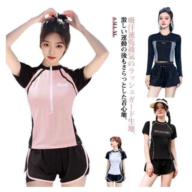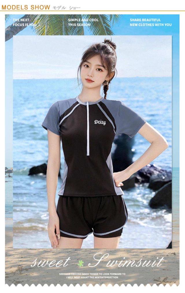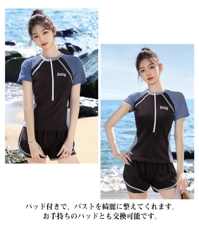 黒 学生 半袖tシャツ レディース 高校生 UVカット 大きいサイズ セパレート ママ水着 体型カバー水着 ラッシュガードセット ショートパンツ レイヤード風 2点セット 水着 白 かわいい 服みたいな 体型カバー水着 40代 50代 60代 ミセス