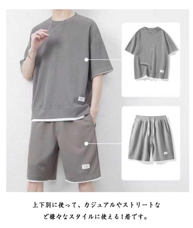 ジャージ 春 上下セット ジャージ メンズ レディース 夏服 ハーフパンツ ワッフル生地 Tシャツ ウォーキング 短パン スポーツウェア お兄系 ランニング ナイトウェア 2点セット 夏 半袖 散歩 体育祭 ゆったり 大きいサイズ