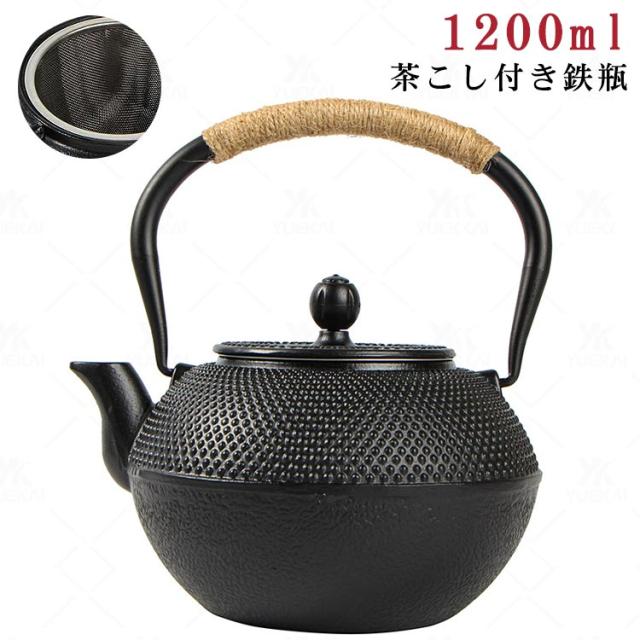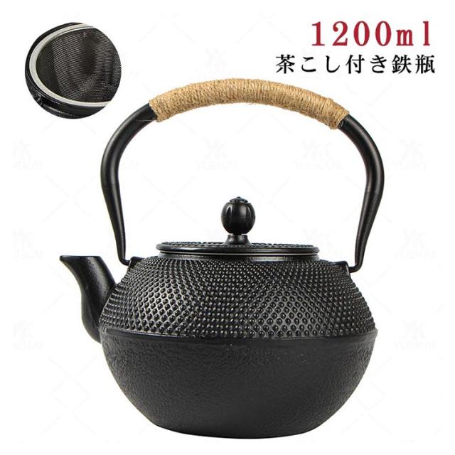 急須 シンプル 1200ml ケトル IH対応 鉄分補給 ブラック ガス対応 鉄瓶 ドット 直火 湯沸かし 鉄瓶 茶器 茶道具 煎茶道具 敬老の日 誕生日