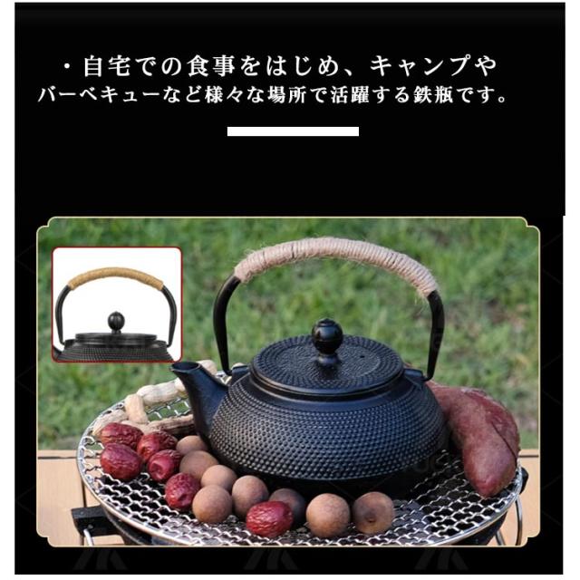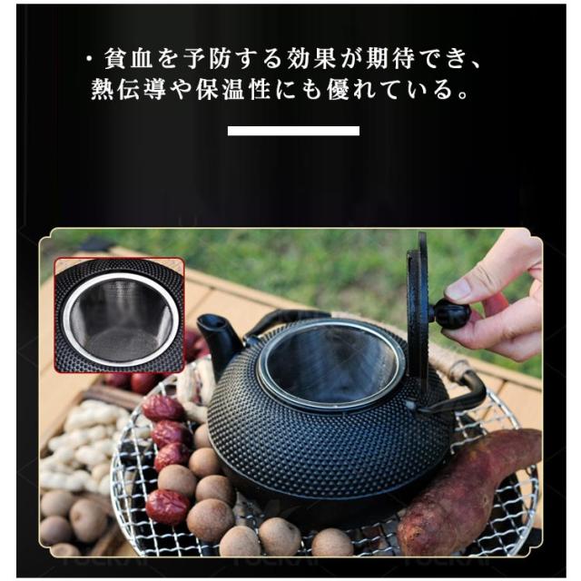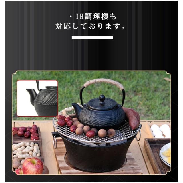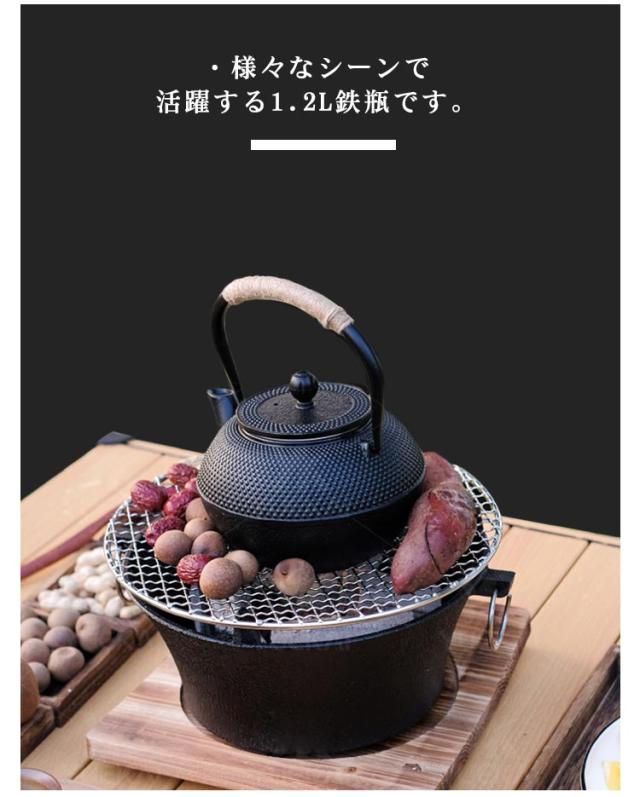 | ・茶こし付き鉄瓶 ・様々なシーンで活躍する1.2L鉄瓶です。 ・IH調理機も対応しております。 ・貧血を予防する効果が期待でき、熱伝導や保温性にも優れている。 ・自宅での食事をはじめ、キャンプやバーベキューなど様々な場所で活躍する鉄瓶です。 | |