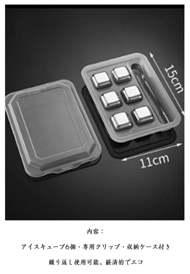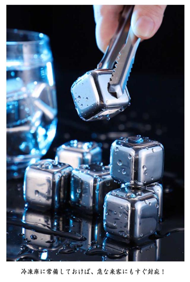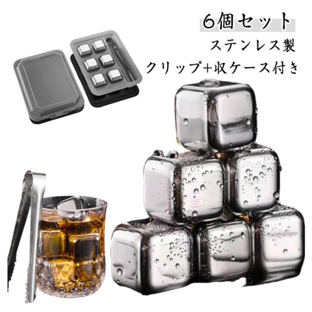 【6個セット】アイスキューブ 【6個セット】アイスキューブ ステンレス製 氷 保冷剤 溶けない氷 クリップ付き 収納ケース キューブ 急速冷却 繰り返し 何度でも使えるウイスキーストーン キューブ こおり 冷蔵庫 角氷 飲み物 ビール 永久氷酒用品 水割りセット 結婚祝い