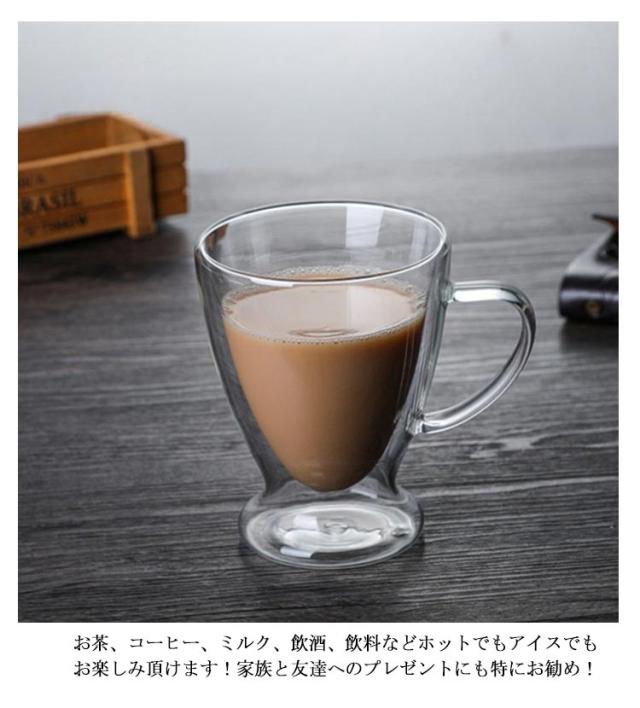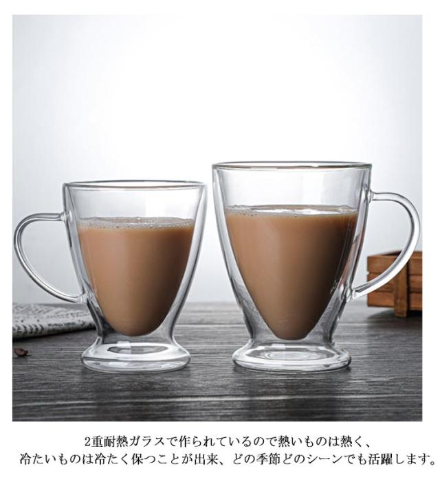 【2個セット】 ダブルウォールグラス マッグカップ 二重構造 カップ 取手付き 250ml 保冷 透明 お茶 耐熱 400ml コーヒー 真空断熱 洗いやすい 300ml 【2個セット】 お酒 ビール クリア 北欧 グラス おしゃれ 軽量 ギフト