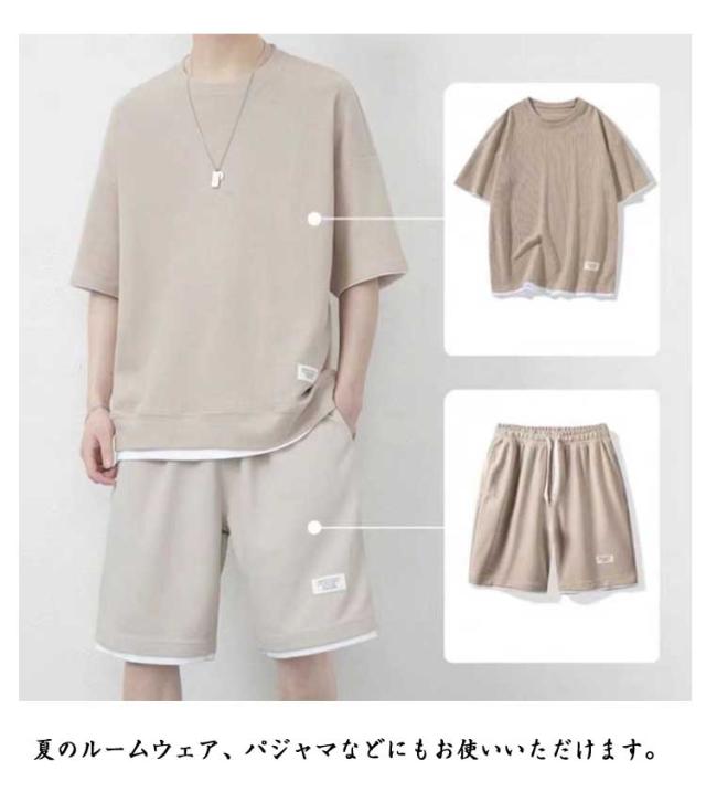 ランニング 短パン メンズ ウォーキング ジャージ ジャージ レディース 夏服 ハーフパンツ 上下セット Tシャツ スポーツウェア ルームウェア お兄系 2点セット ナイトウェア 春 夏 半袖 散歩 体育祭 ゆったり 大きいサイズ