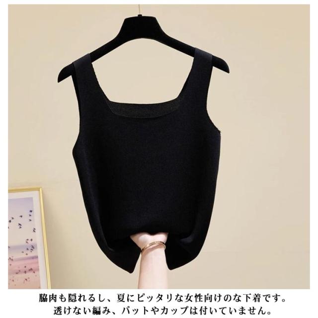 ストレッチ キャミソール タンクトップ カットソー ブラ紐隠しリブインナー インナー スクエアネック トップス レディース ノースリーブ 脇下隠し ストレッチ 涼感 透け防止 ブラ紐隠しリブインナー 無地 リブ 肌着 肩紐太め 春夏秋