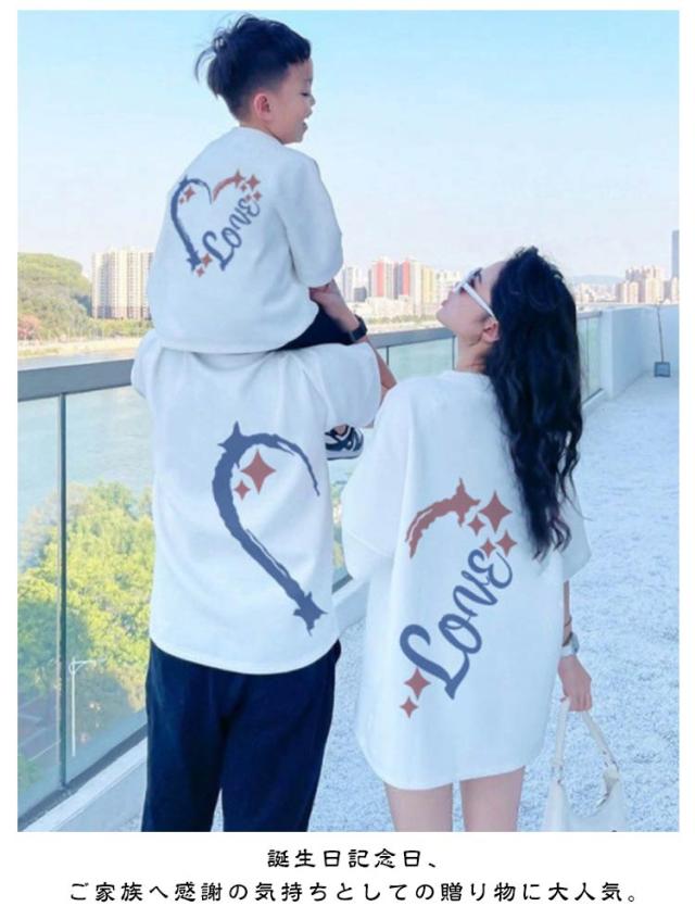 | 家族揃いで幸せ感たっぷり!おしゃれな親子ペアルック服。 家族旅行、撮影、運動会、お出かけに最高。 誕生日記念日、ご家族へ感謝の気持ちとしての贈り物に大人気。 着心地の良い柔らかい素材を使用しています。 カジュアルなファッションにピッタリのアイテムです。大人から子どもまでサイズ展開があり、センスを感じる親子お揃いコーデにおすすめの1枚になっています。 パパやママへのプレゼントにも、親子でペアが楽しめるTシャツは嬉しいもの。記念にもなりますよ。 | |