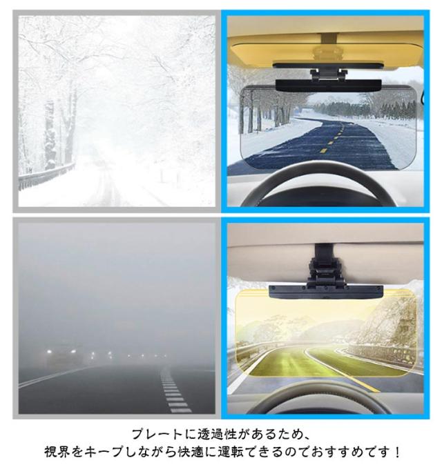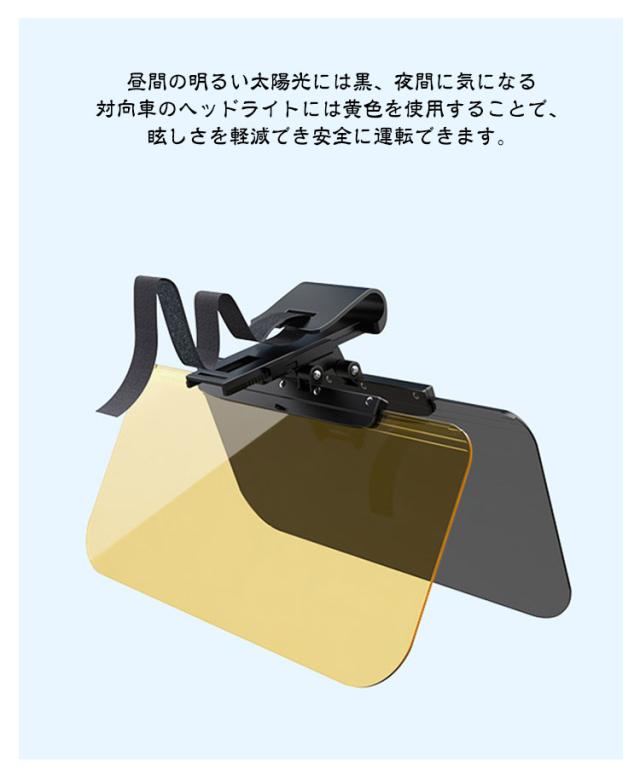 | 車昼夜兼用サンバイザー。昼夜兼用の便利な2in1の車用サンバイザーです。 昼間の明るい太陽光には黒、夜間に気になる対向車のヘッドライトには黄色を使用することで、眩しさを軽減でき安全に運転できます。 特に日差しが強くて気になる場合は、両方を重ねて使用するとより効果的! 見やすい位置まで簡単に調節できる!横方向に最大150mm移動でき、前後方向に最大70mm移動できます。 角度調節機能付き!黒は180度、イエローは100°回転させることも可能。 プレートに透過性があるため、視界をキープしながら快適に運転できるのでおすすめです! セダン、コンパクトカー、ミニバン、SUV、ワゴンなど幅広い車種に対応。 | |