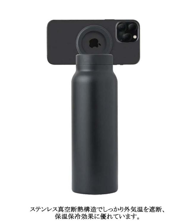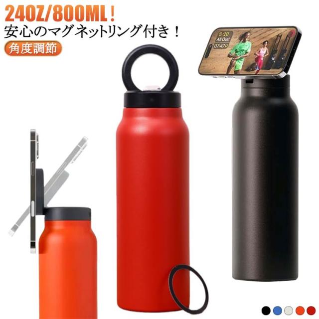 食洗機対応 直飲み 水筒 マグボトル オフィス 運動 24oz/800ML スマホホルダー マグボトル 全機種対応 マグネット式 黒 角度調節 三脚無し 水筒 ジム 水筒 マグネットリング付き 保温 保冷 おしゃれ 白 オレンジ 青 赤