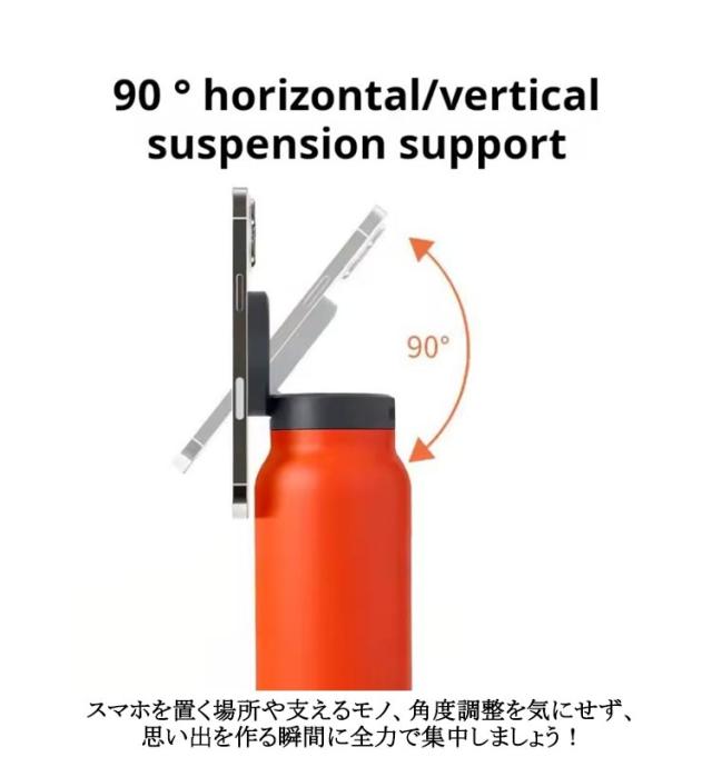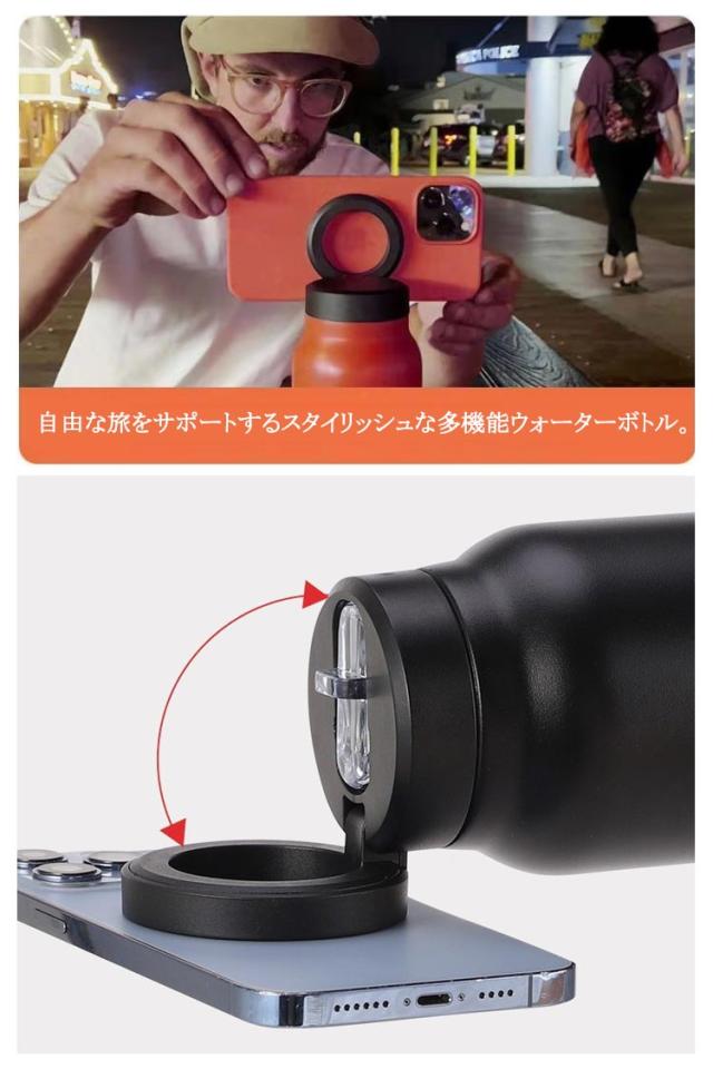 | 24oz/800ML!安心のマグネットリング付き! 自由な旅をサポートするスタイリッシュな多機能ウォーターボトル。 シンプルなデザインで、持ち運びやすいコンパクトサイズが特徴です。 ステンレス真空断熱構造でしっかり外気温を遮断、保温保冷効果に優れています。 疲れた手や腕を解放し、ストレスから解放されましょう! 自由自在な角度調整で、どんな場所でもスマートフォンを安定させ、集中力を最大限に発揮できます。 さらに、友人や家族とのビデオ通話やライブ配信も、手軽で快適に楽しめます。 スマホを置く場所や支えるモノ、角度調整を気にせず、思い出を作る瞬間に全力で集中しましょう! | |