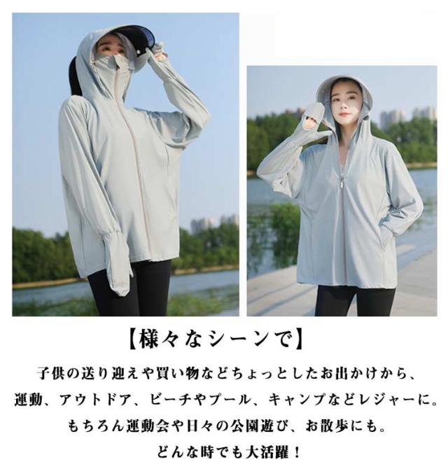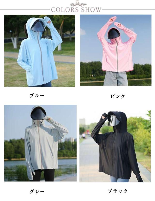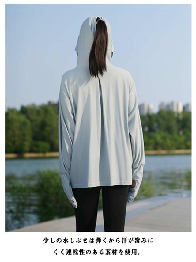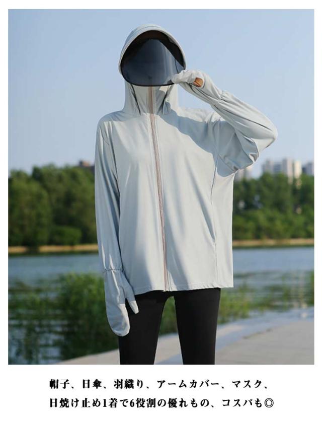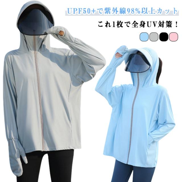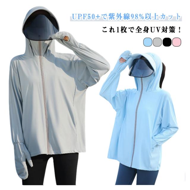 UVカット 自転車用 羽織 ラッシュガード レディース サンシェード バイザー 涼しい パーカー UVカット UPF50+ 日焼け防止 360度紫外線対策 ジャケット 夏 薄手 接触冷感 ラッシュパーカー 指穴 フード付き 日焼け対策