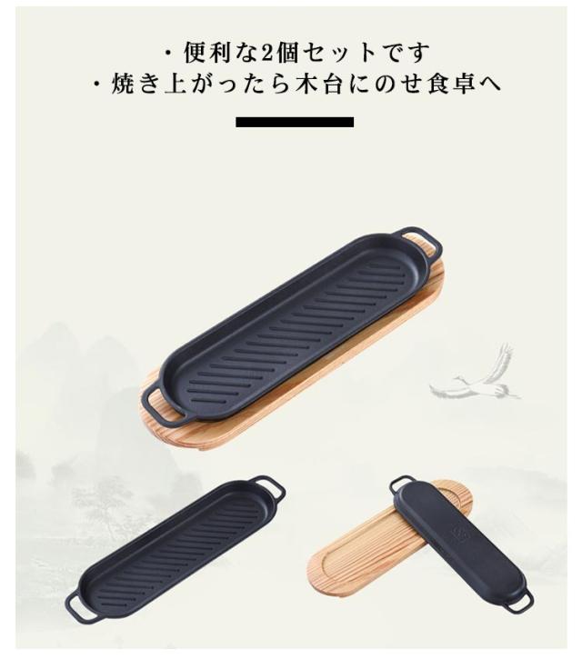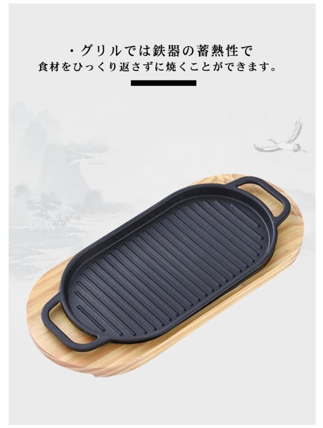 スリム 焼きグリル グリルプレート 木台付 魚焼きグリル 鉄分補給 直火 焼きグリル グリル皿 IH対応 直火