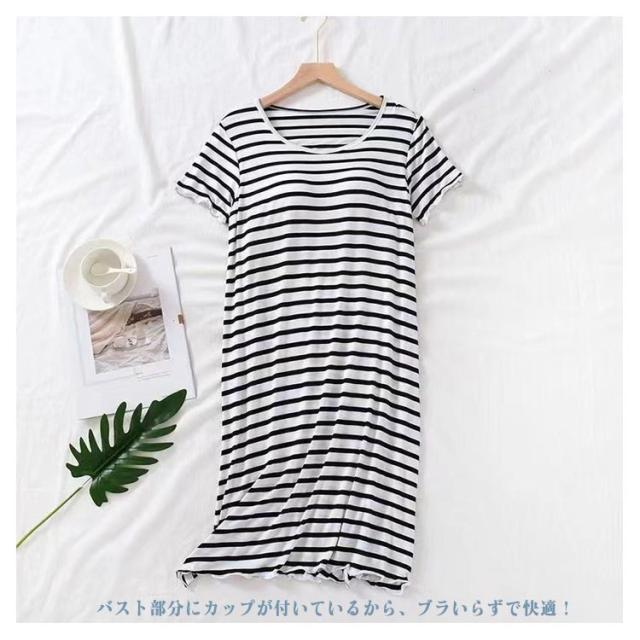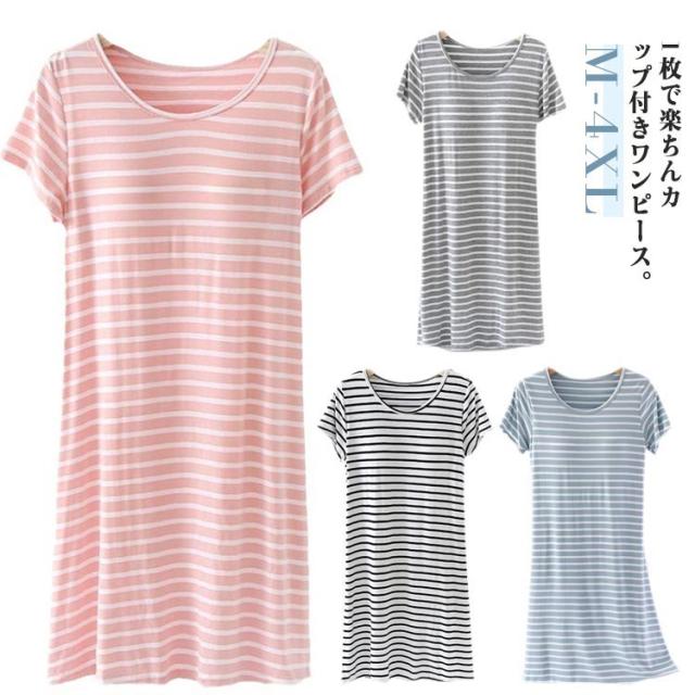 カップ付き 部屋着 カップ付き 大きいサイズ ワンピース カップ付きワンピース ルームウェア ボーダー柄 ナイトウェア 締め付けない パッド付きワンピ レディース パジャマ ノンワイヤー カップ付き 部屋着 室内着 ピンク ブラック グリーン