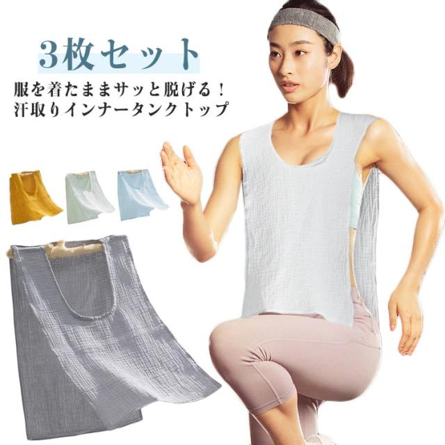 汗取りインナー 汗じみ防止 サイドオープン 汗取りパッド タンクトップ サッと脱げる 背中 汗取りインナー 汗取りタオル インナー キャミソール 3枚セット 肌着 下着 通勤 満員電車 通学 スポーツ ガーデニング