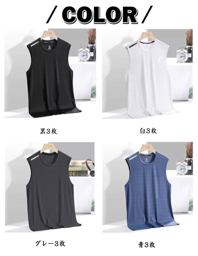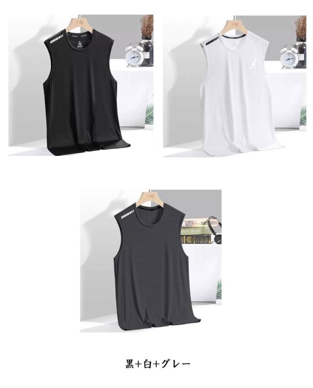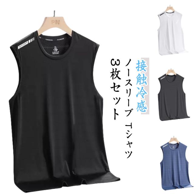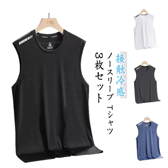 ジム 吸汗速乾 薄手 スポーツウェア ノースリーブ 【3枚セット】接触冷感 夏 メッシュ ドライ タンクトップ 涼しい 袖なしTシャツ ランニング メンズ 運動着 無地 【3枚セット】接触冷感 トップス 大きいサイズ 夏服 フィットネス 筋トレ 運動会