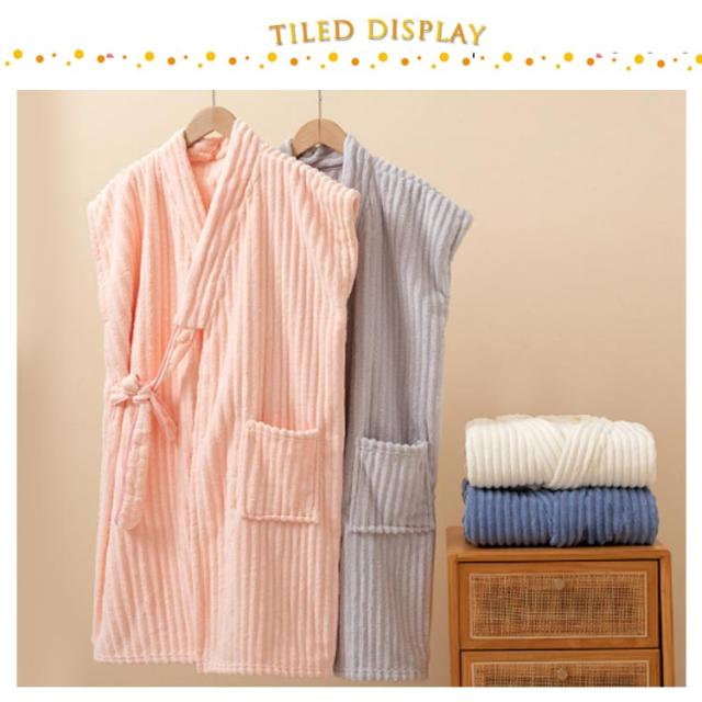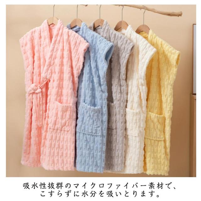 | お風呂上りにサッと着れるバスローブ♪夏でも快適な半袖タイプです。 バタバタしがちなお風呂上がりもスムーズに着用できる!紐付きで、はだけにくいのもポイント。 吸水性抜群のマイクロファイバー素材で、こすらずに水分を吸いとります。 フワフワの素材で手触りも柔らか。カラーを13色よりお選びいただけます。 お風呂上がりにはふっくらした生地で素肌に心地良く、触れてもさらりと気持ちいい一枚です。 | |