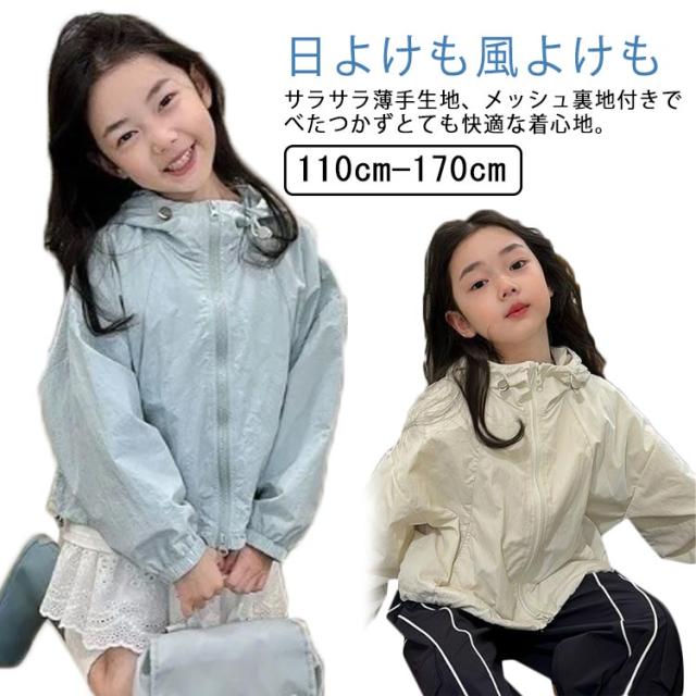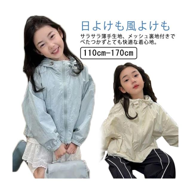キッズ サマージャケット uvカット パーカー ブルゾン フード付き 女の子 ラッシュガード メッシュ裏地 サラサラ ジュニア 虫よけ 日焼け止め 速乾 ラッシュ パーカー 紫外線対策 接触冷感 羽織り