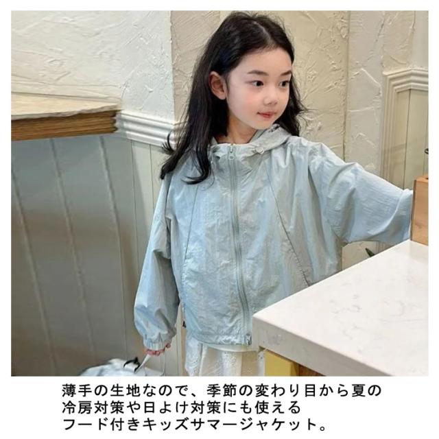 | 日よけも風よけも♪ サラサラ薄手生地、メッシュ裏地付きでべたつかずとても快適な着心地。 uvカット機能付きで、夏のお出かけや公園遊びなどの紫外線対策に。 薄手の生地なので、季節の変わり目から夏の冷房対策や日よけ対策にも使えるフード付きキッズサマージャケット。 通園通学など日常使いはもちろん、気温が変わりやすいアウトドアや天気がよめない旅行に持っていくにもぴったり! | |