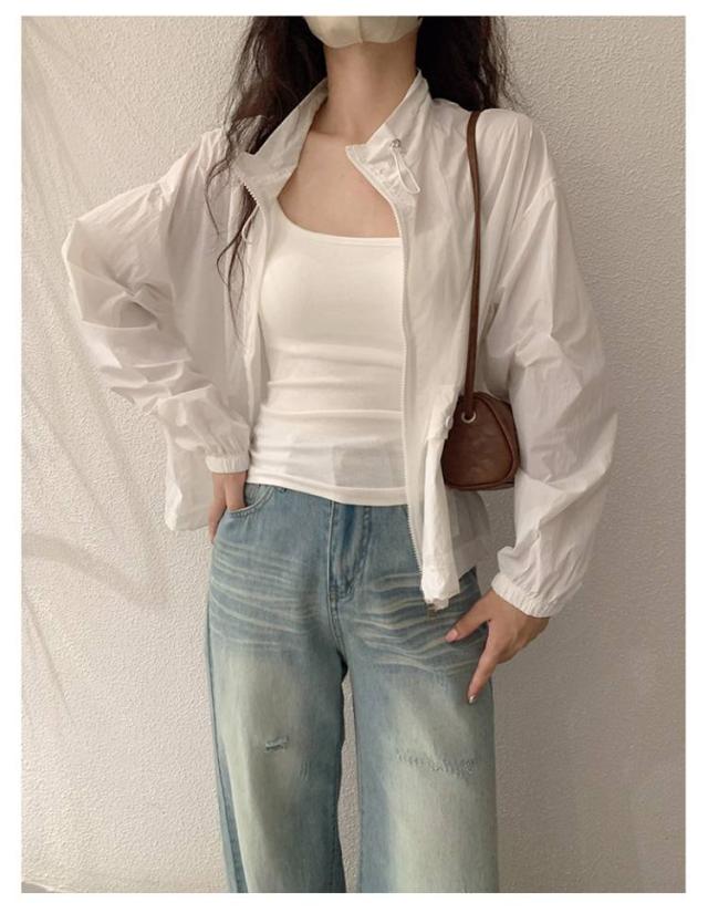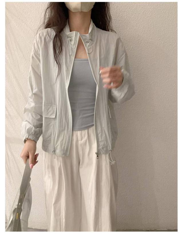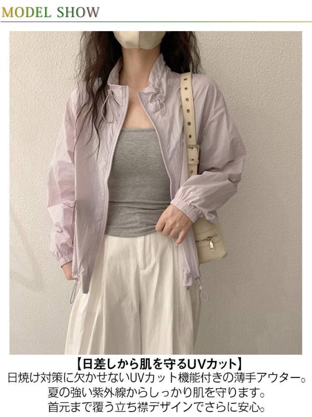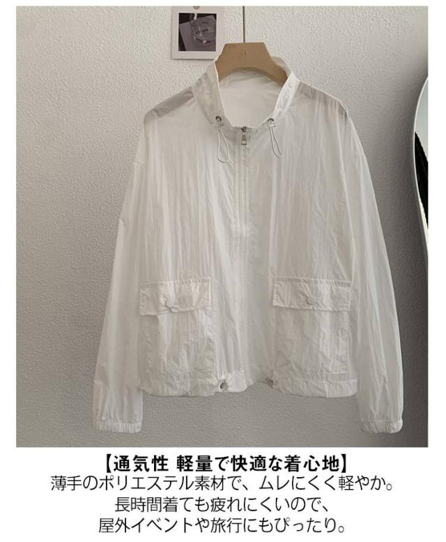 送料無料 UVカットジャケット 立ち襟 ジップアップ 夏 UVカットジャケット 長袖 上着 羽織り ライトアウター パーカー 日焼け防止 カジュアル 春夏秋