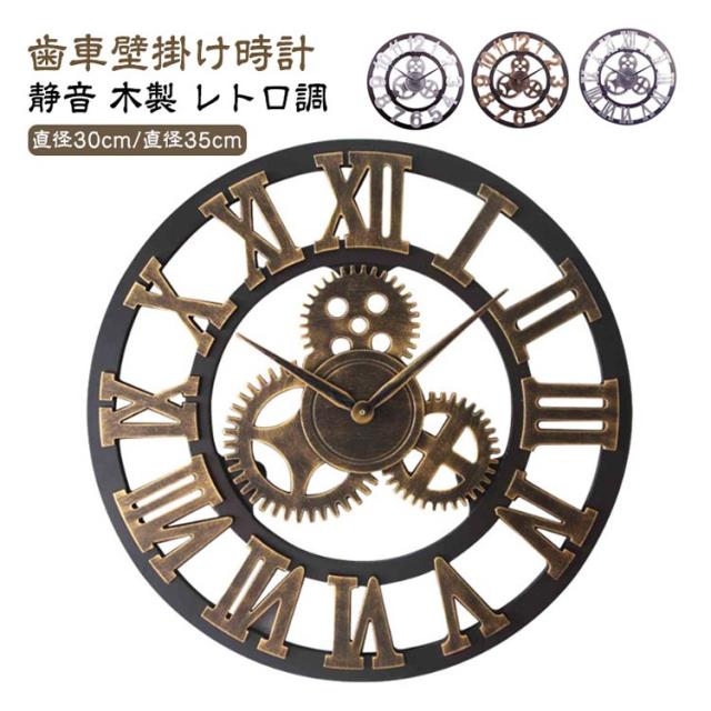 壁掛け 北欧 電池式 壁掛け時計 歯車 ローマ数字 ウッド アンティーク 静音 木製 おしゃれ 雑貨 時計 レトロ ウォールクロック 欧風 アナログ デザイナーズクロック 木 アメリカンクロック インテリア 壁飾り かっこいい モダン