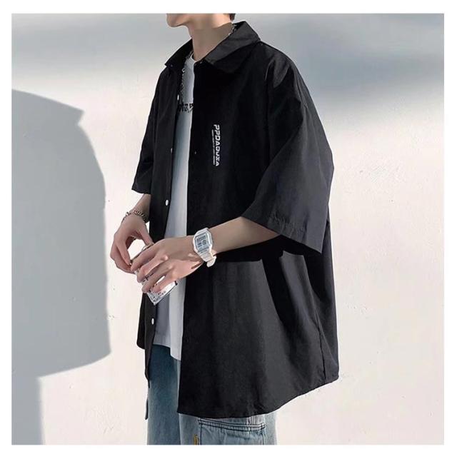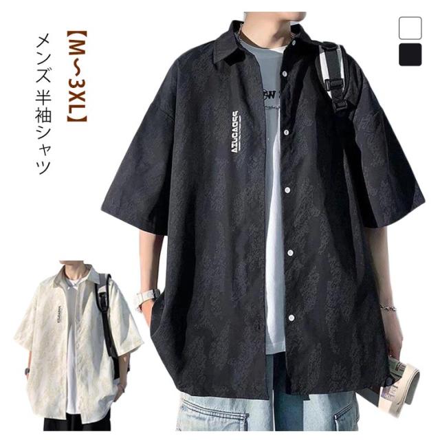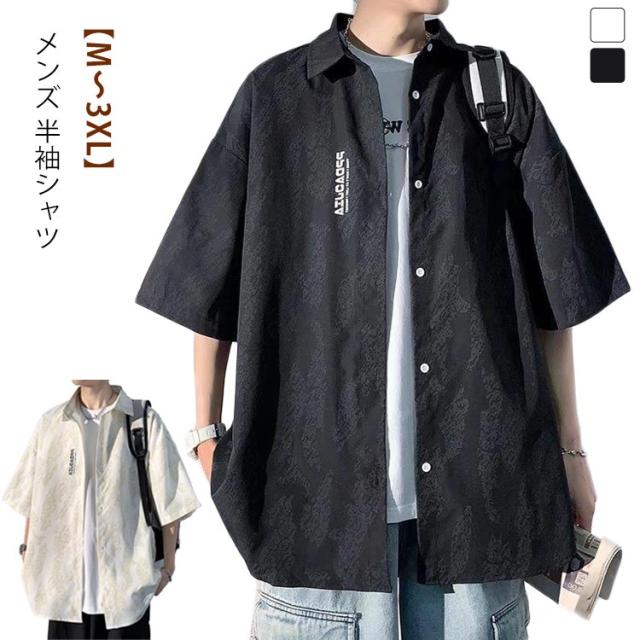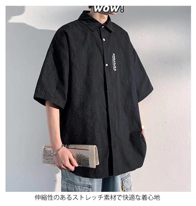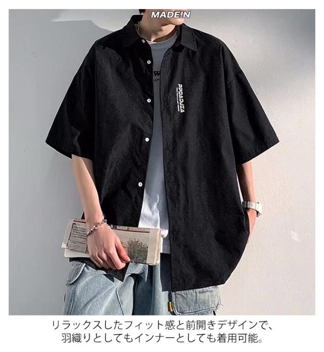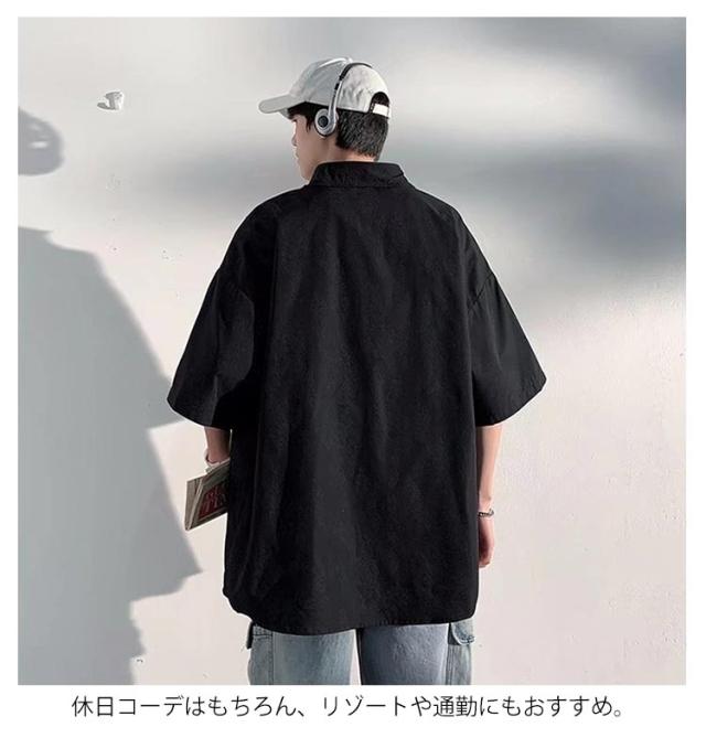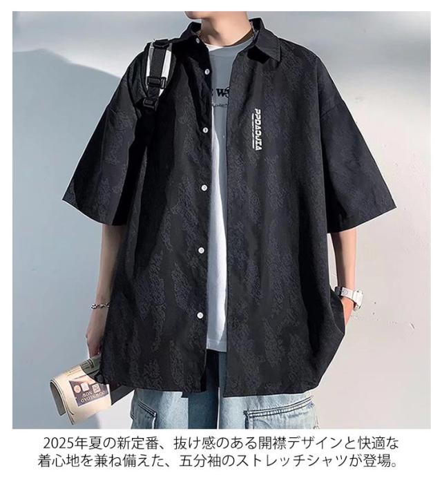 メンズシャツ 五分袖 前開き カジュアルシャツ 半袖シャツ 無地 シンプル ストレッチ素材 開襟シャツ 羽織り 着回し 大人カジュアル ゆったり 大きいサイズ ホワイト ブラック 送料無料