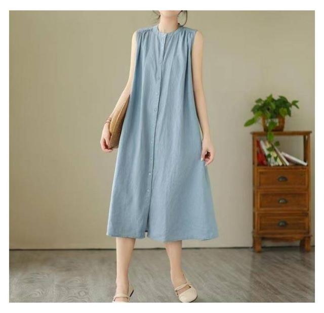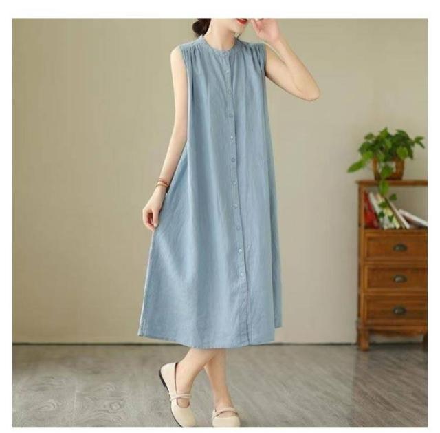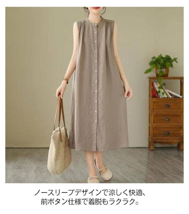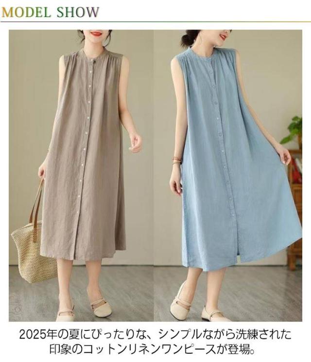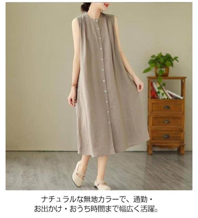 | 2025年の夏にぴったりな、シンプルながら洗練された印象のコットンリネンワンピースが登場。 ノースリーブデザインで涼しく快適、前ボタン仕様で着脱もラクラク。 ゆったりとしたAラインシルエットが、自然に体型をカバーしつつ、美しいシルエットを叶えます。 ナチュラルな無地カラーで、通勤・お出かけ・おうち時間まで幅広く活躍。 1枚でコーデが完成する、夏のマストアイテムです。 | |