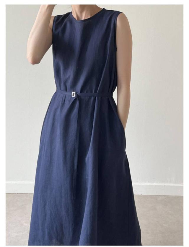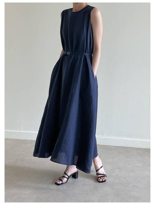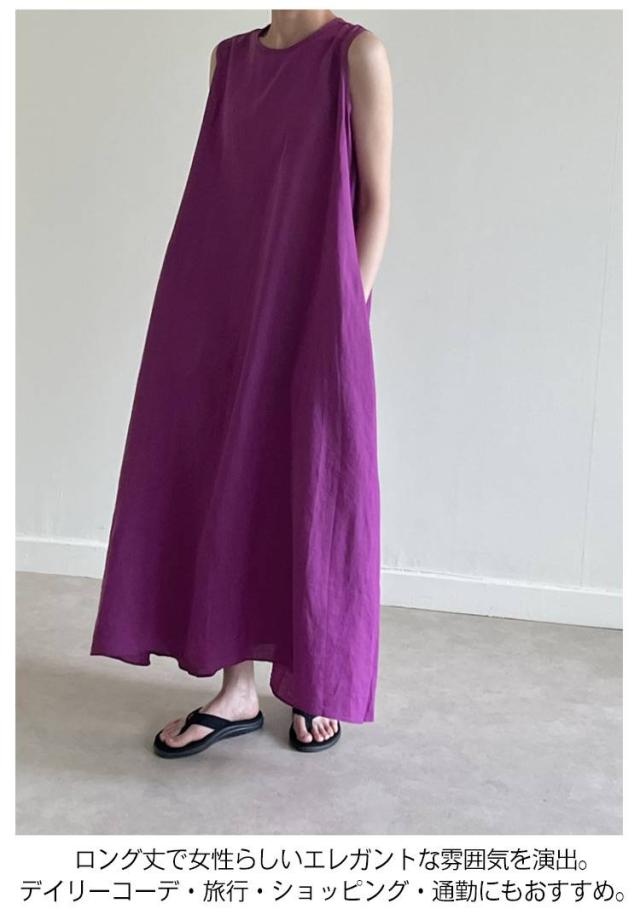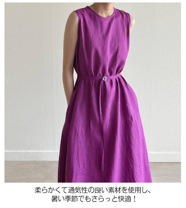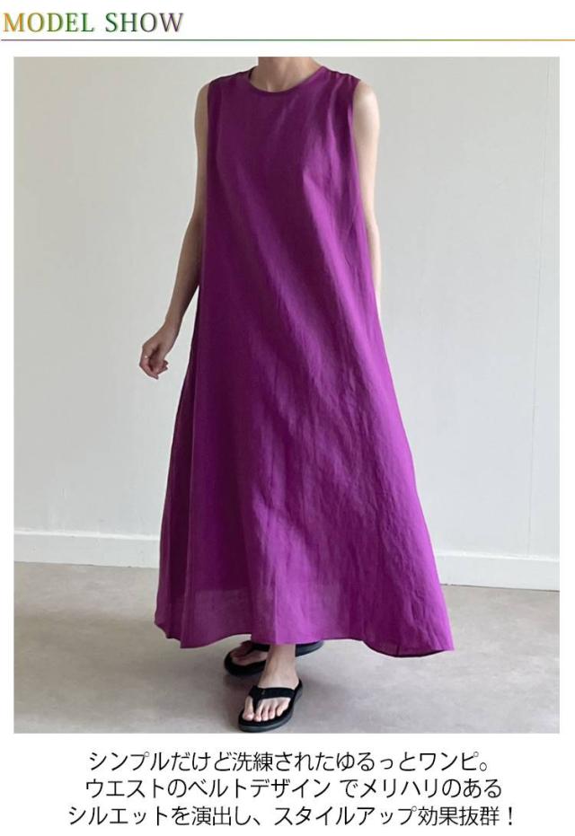 春夏 タンクトップ ノースリーブ ワンピース きれいめ ワンピ マキシ ロング ワンピース マキシワンピース ラウンドネック ウエストマーク 夏