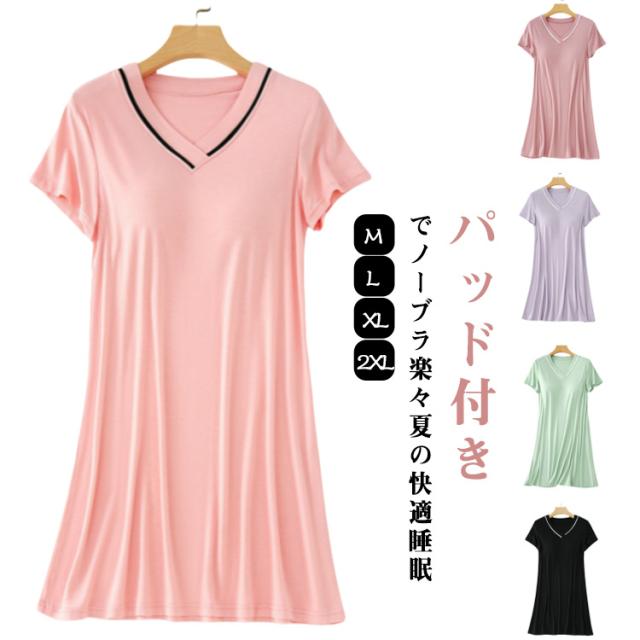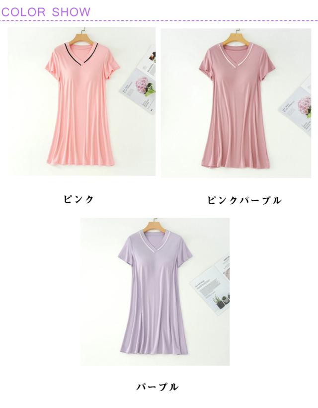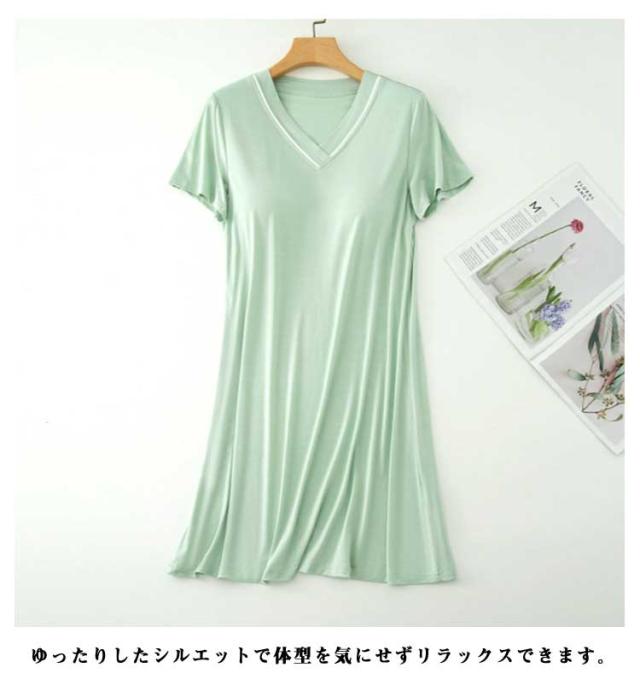 ルームウェア 女性 ナイトドレス 快適 夏 パジャマ ワンピース Vネック 夏用 半袖 薄手 ゆったり 肌触り抜群 パジャマ ホームウェア 吸汗 通気性 大きいサイズ 寝間着 カジュアル 部屋着