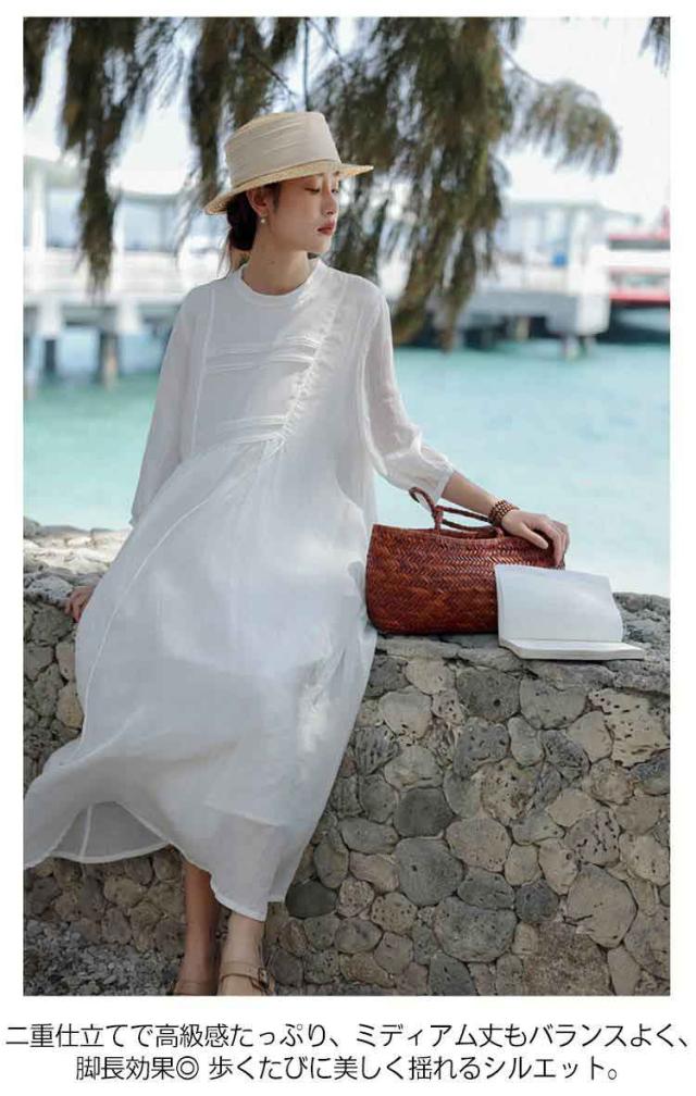 | 上品で優雅、清潔感のあるホワイトワンピース。 高品質な ?麻(リネン) 天?(テンセル) 素材を使用し、肌に優しく、ふんわり軽やかな着心地。暑い季節でもさらっと快適に過ごせます。 二重仕立てで高級感たっぷり、ミディアム丈もバランスよく、脚長効果◎ 歩くたびに美しく揺れるシルエット。 通勤・お出かけ・リゾート旅行にもぴったりの万能アイテム! | |