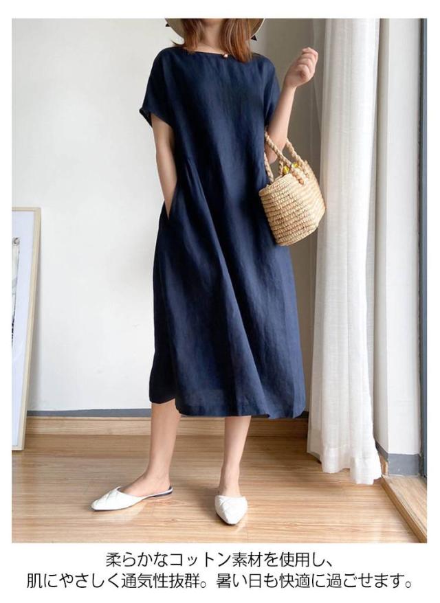 ゆったりワンピ 体型カバー 膝下丈 春夏 ロングワンピース Aラインワンピース 30代 ワンピース 夏用 薄手 綿ワンピース 40代 50代 母の日 ギフト