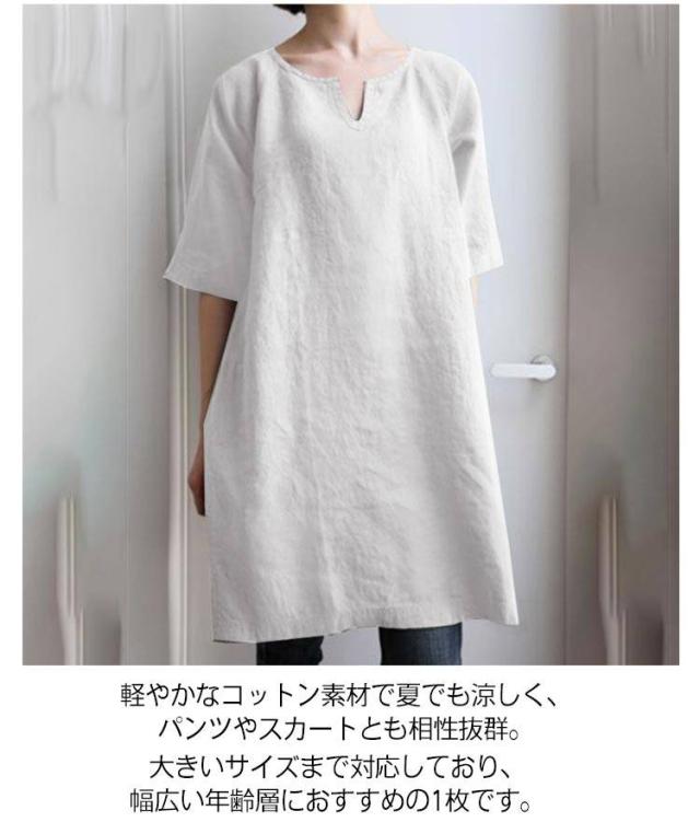 夏服 夏用 ゆったり 大きいサイズ レディース トップス Vネック 体型カバー トップス 無地シャツ チュニック 薄手 30代 チュニックシャツ 40代 50代