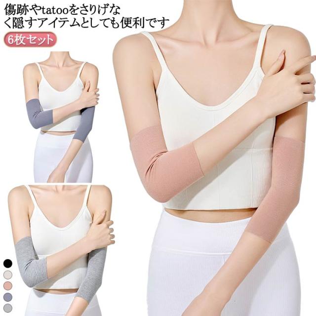 肌色 傷跡かくし 6枚 刺青隠し アームカバー 日焼け対策 通気性 uvカット フィット 引き締め tatooかくし メンズ レディース ストレッチ 6枚 蒸れない 黒 グレー 隠すサポーター 二の腕サポーター カバー サポーター